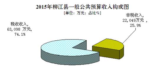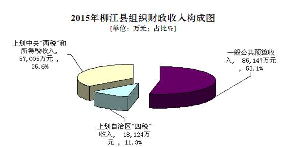 2015年全县组织财政收入160,276万元,完成预算160,088万元的100.1%,同比增长7.5% 。其中:上划中央收入57,005万元,完成预算的98.8% ,同比下降1.3%;上划自治区收入18,124万元,完成预算的101.3%,同比增长5.4%;一般公共预算收入85,147万元,完成预算的100.8%,同比增长14.8%。