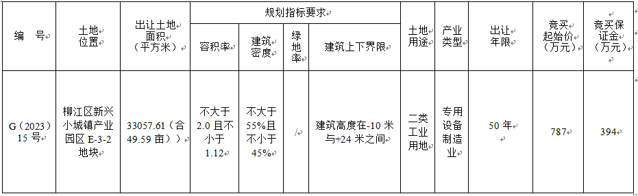 六、申请人可于2023年6月30日至2023年7月19日,到柳州市土地交易储备中心向我局提交书面申请。交纳竞买保证金的截止时间为2023年7月19日18时;