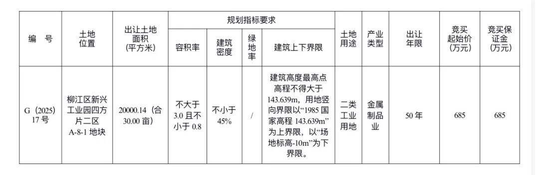 柳州市自然资源和规划局国有建设用地使用权出让公告柳土交告字〔2025〕24号