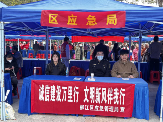 2025年12月4日上午,柳江区应急管理局结合“12·4”国家宪法日集中宣传活动,在柳江区文化宫广场开展“诚信建设万里行,文明新风伴我行”主题宣传,将诚信建设与安全生产科普深度融合,以“面对面”互动形式惠及广大群众。