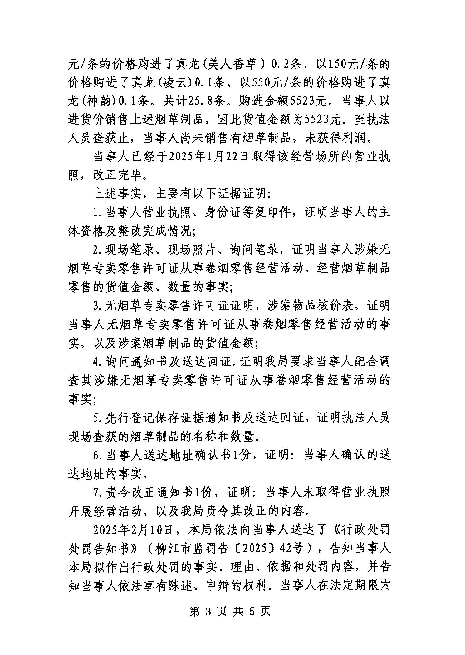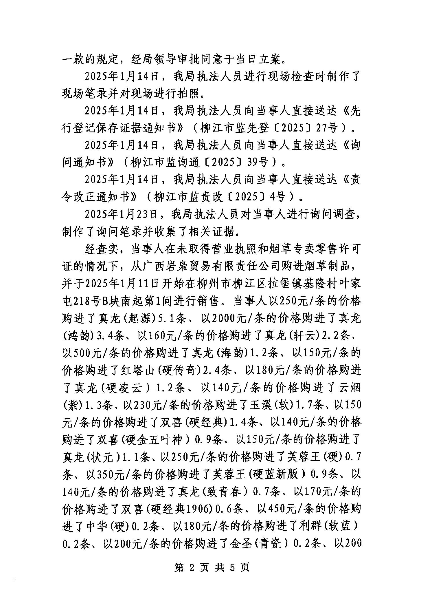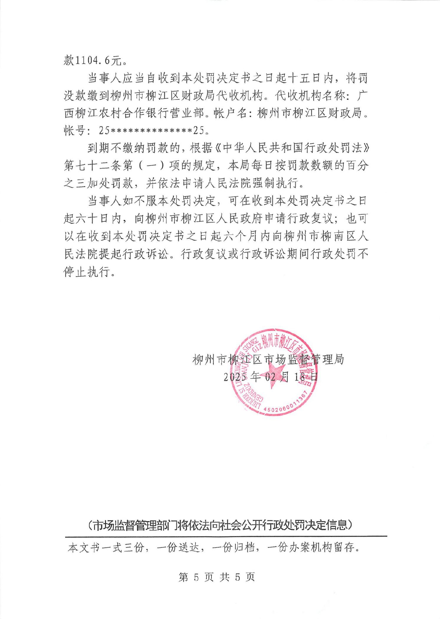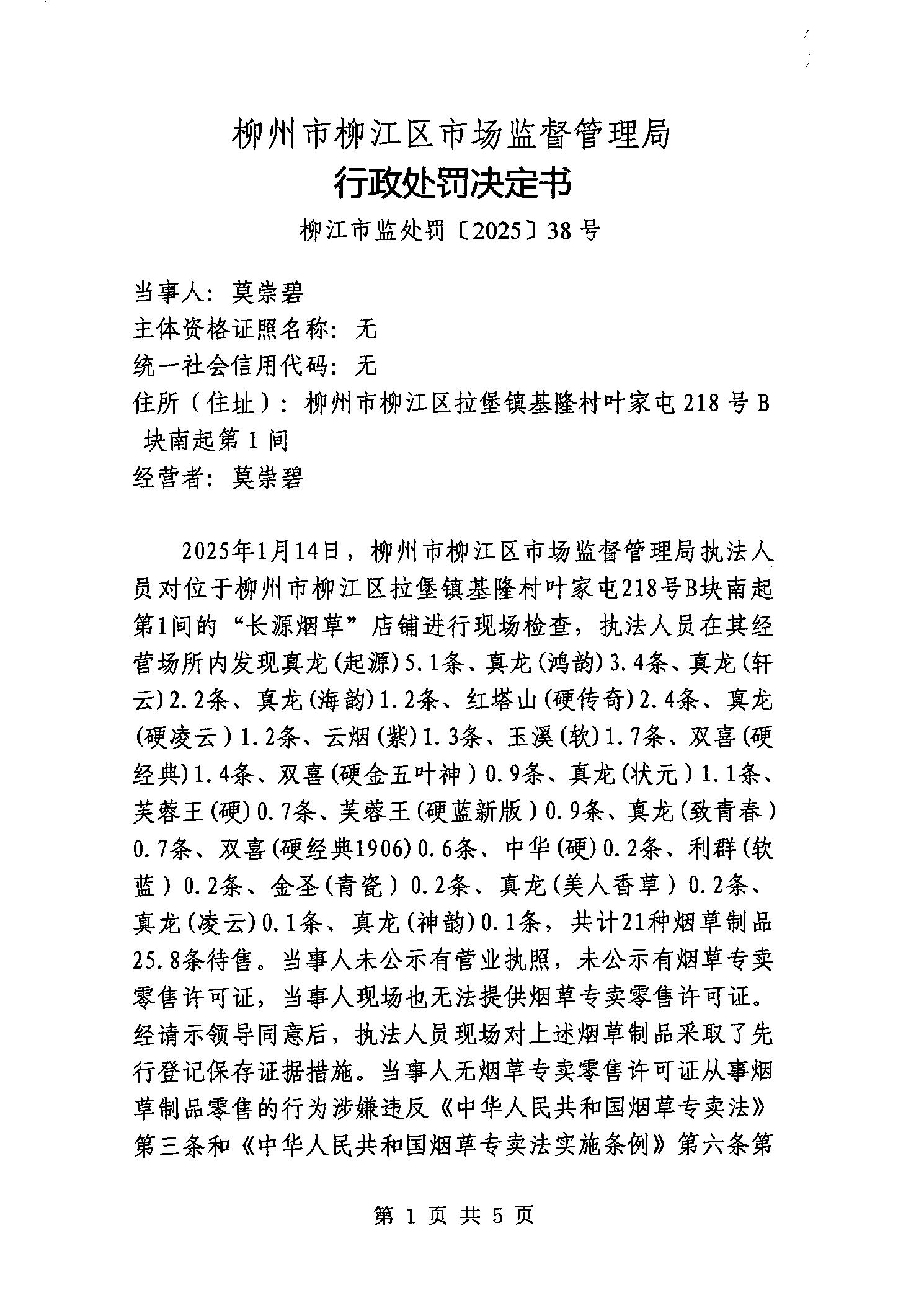 行政处罚决定书(柳江市监处罚[2025]38号)