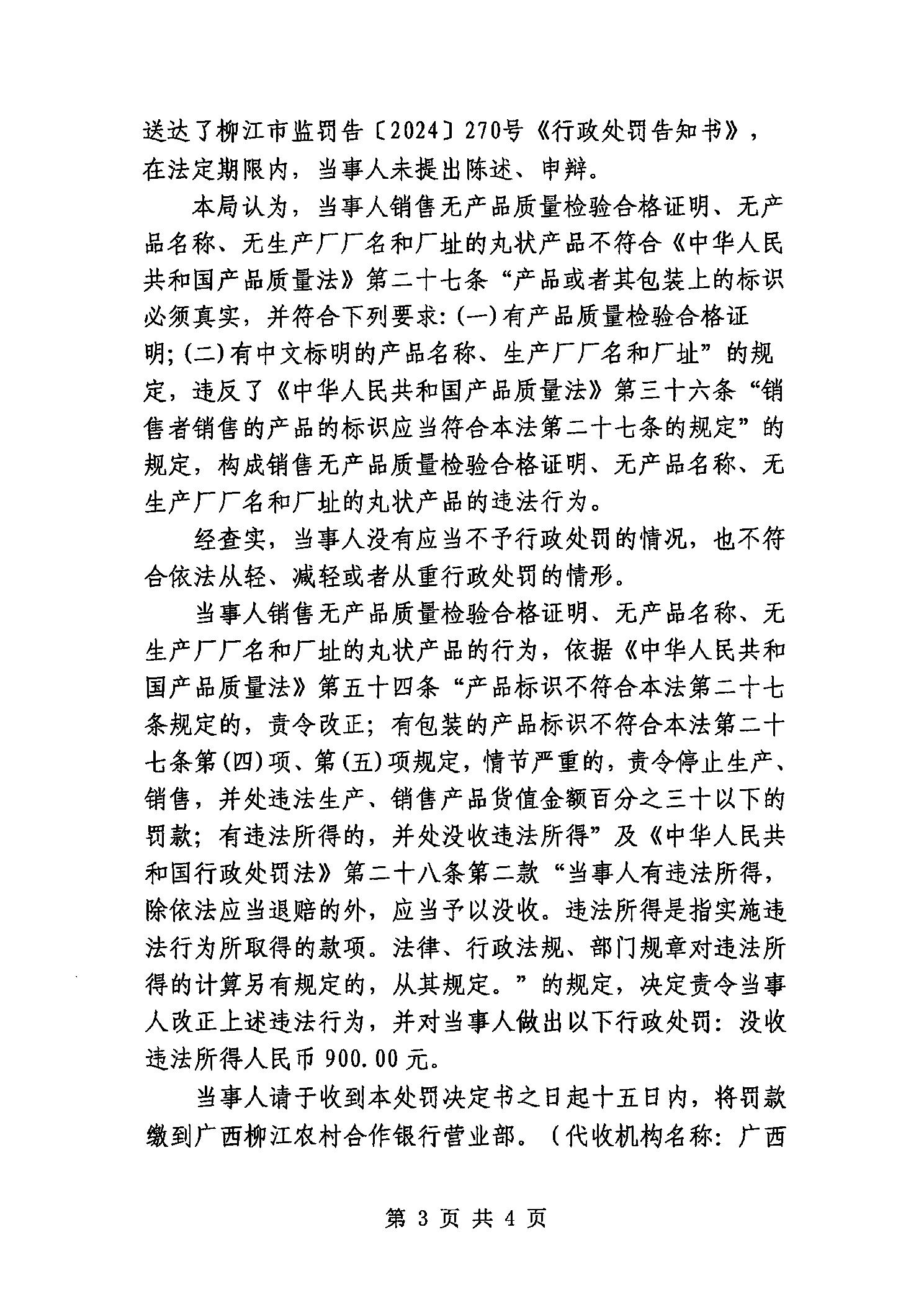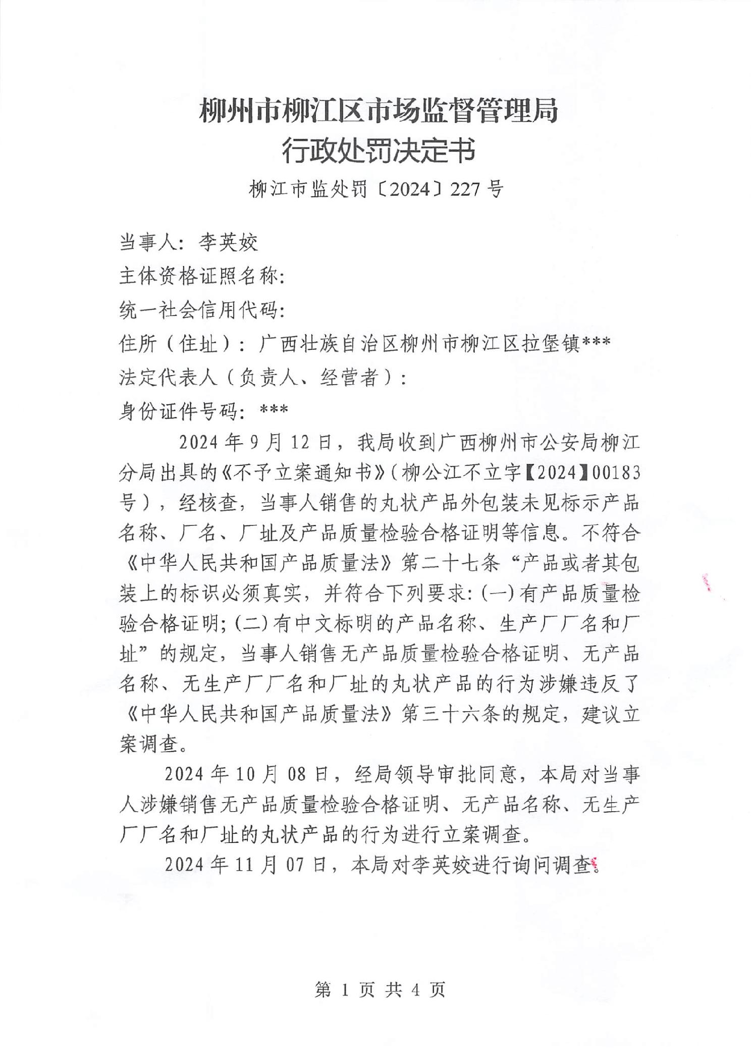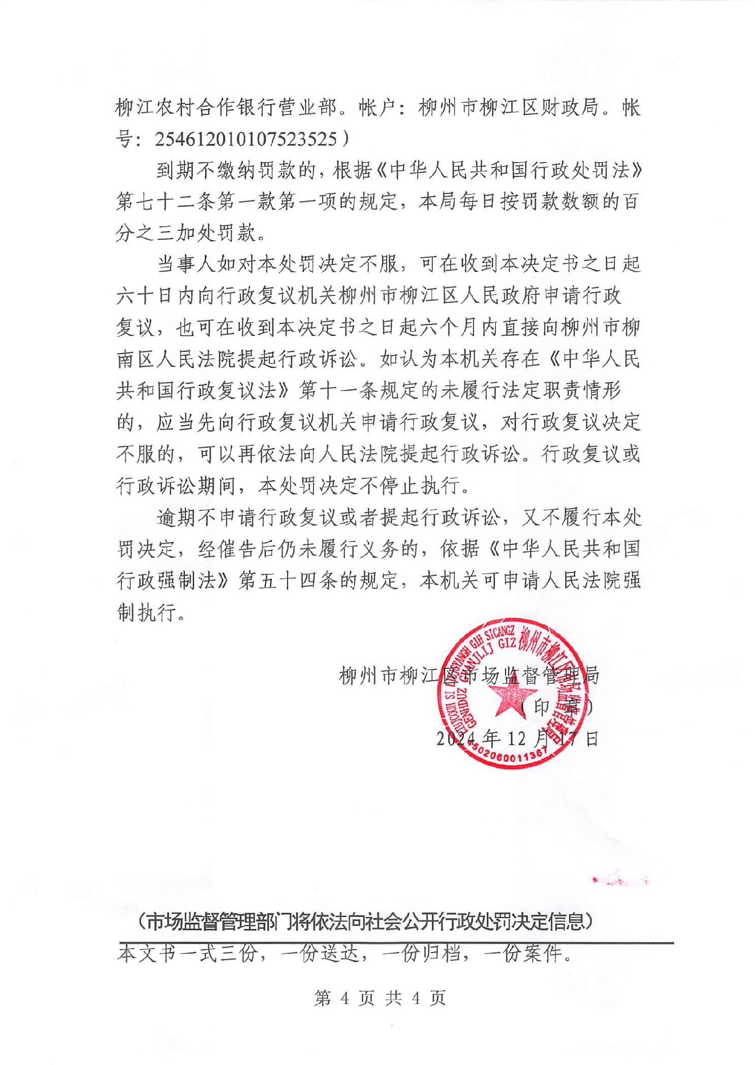 行政处罚决定书(柳江市监处罚[2024]227号)