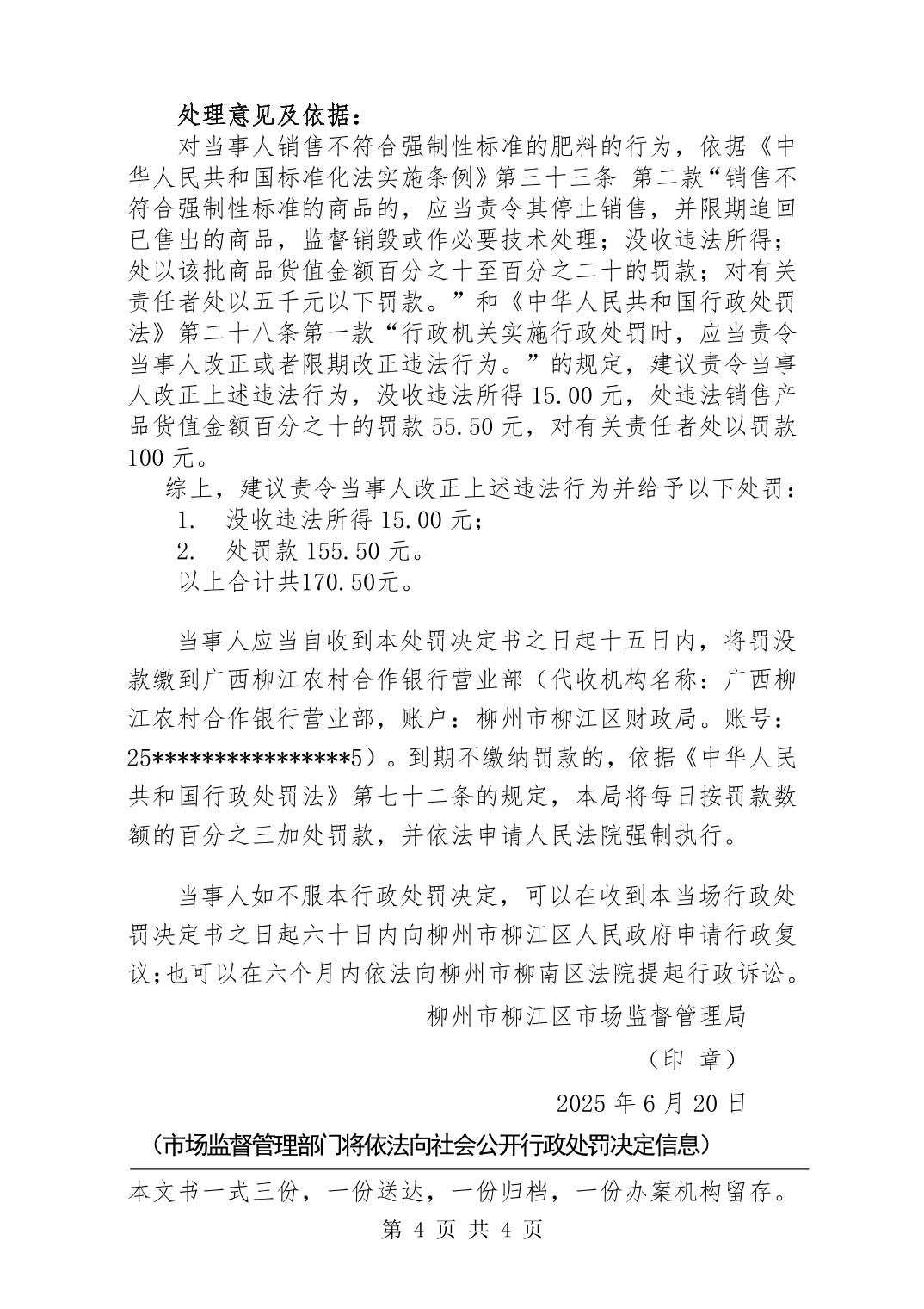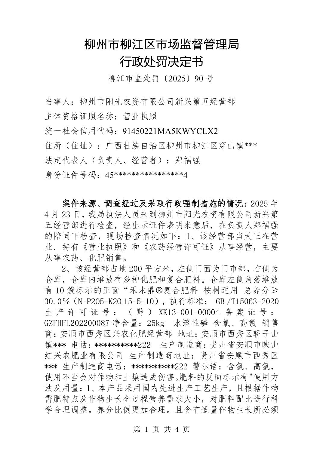行政处罚决定书(柳江市监处罚〔2025〕90号)
