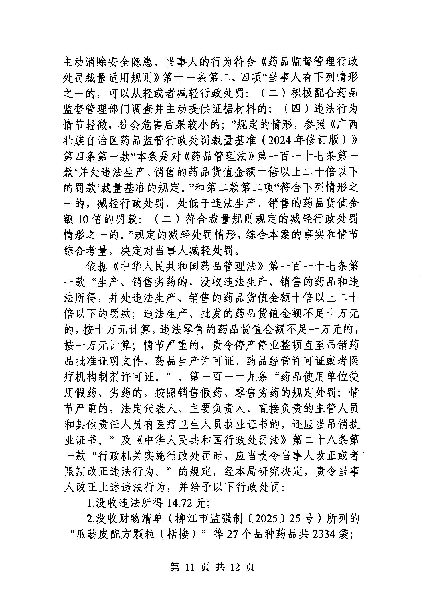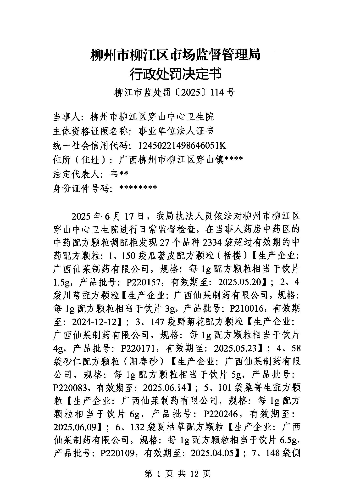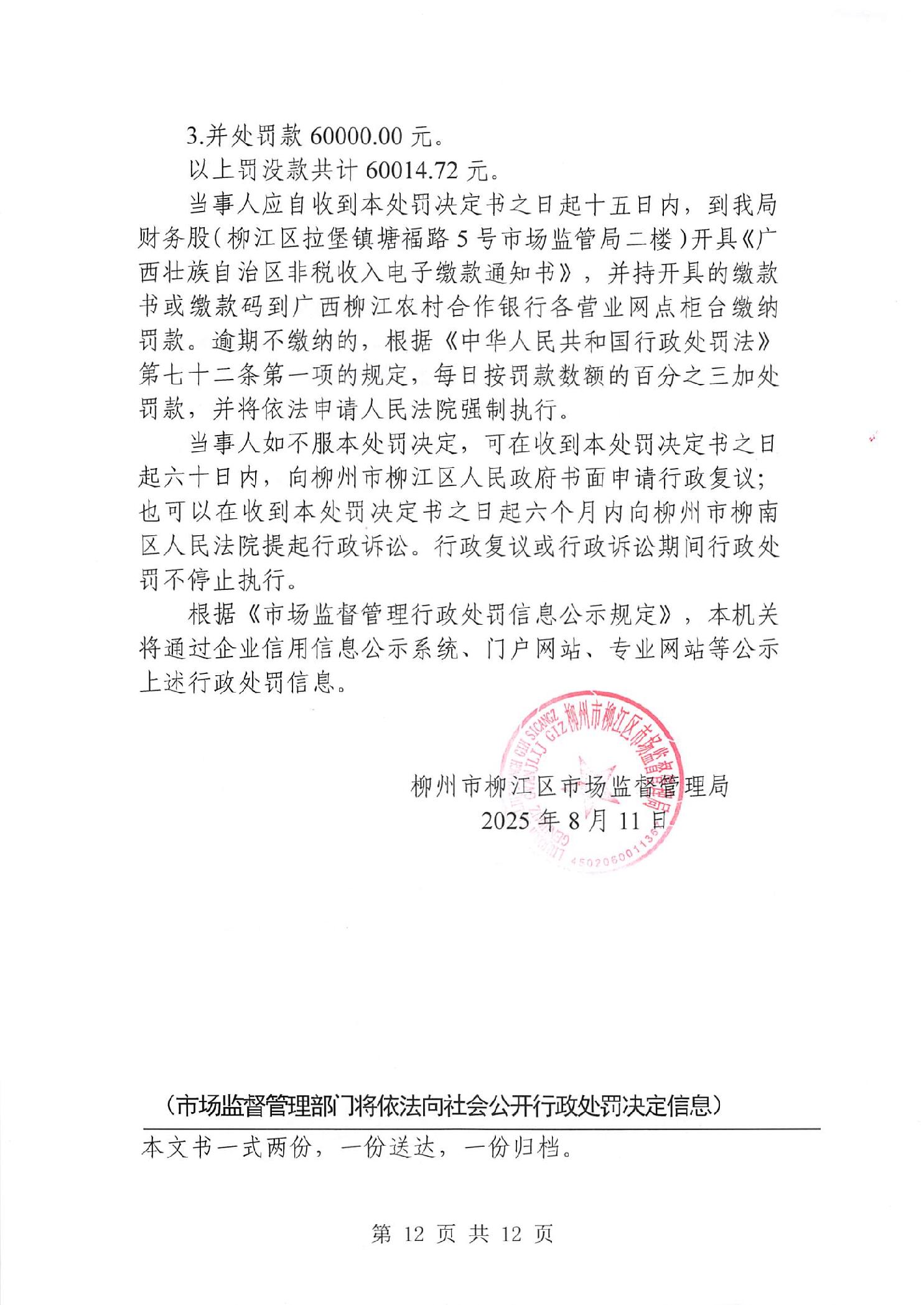 行政处罚决定书(柳江市监处罚〔2025〕114号)