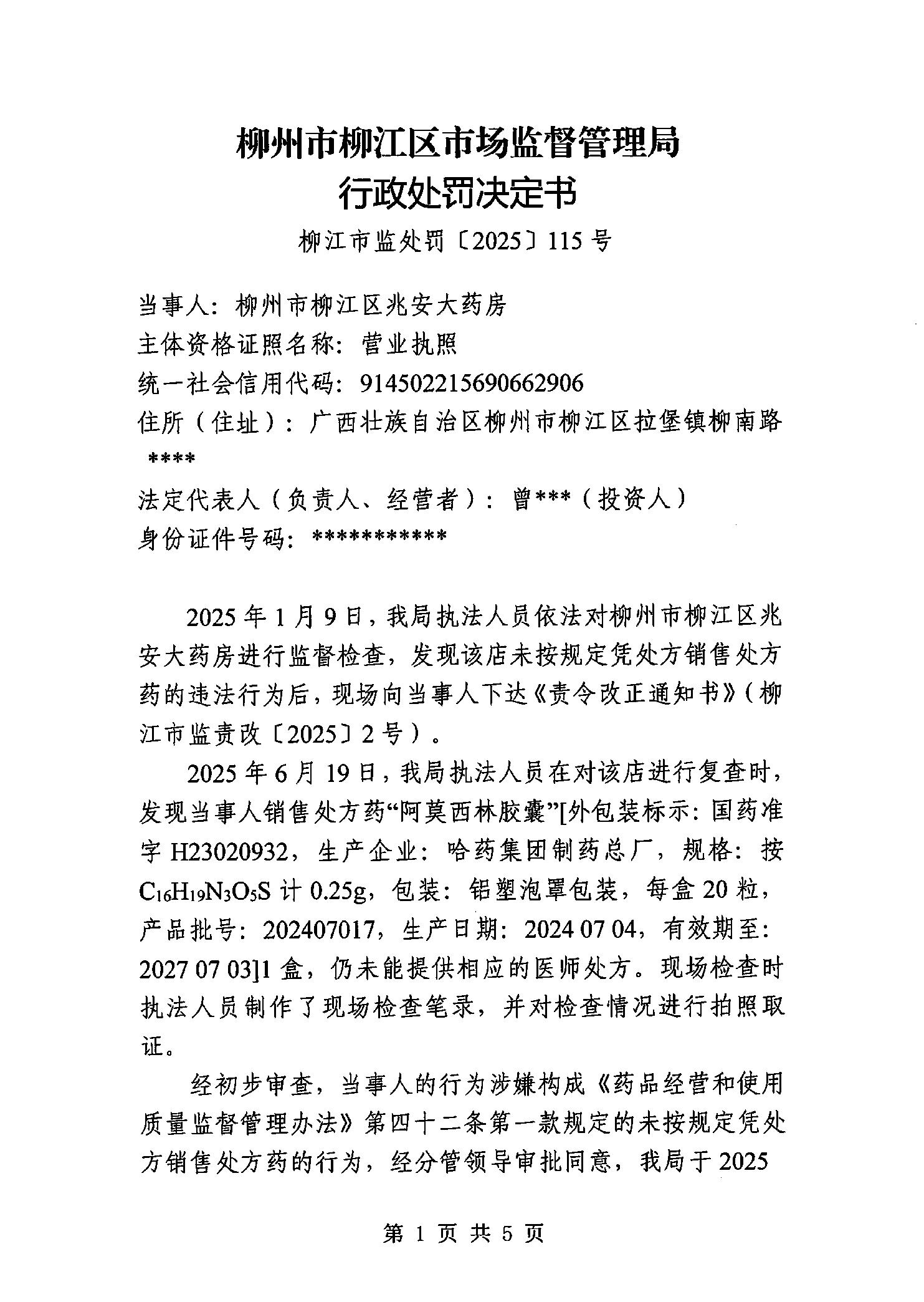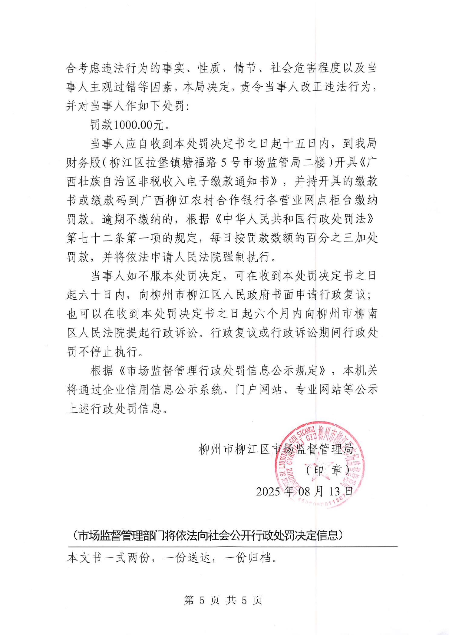 行政处罚决定书(柳江市监处罚〔2025〕115号)