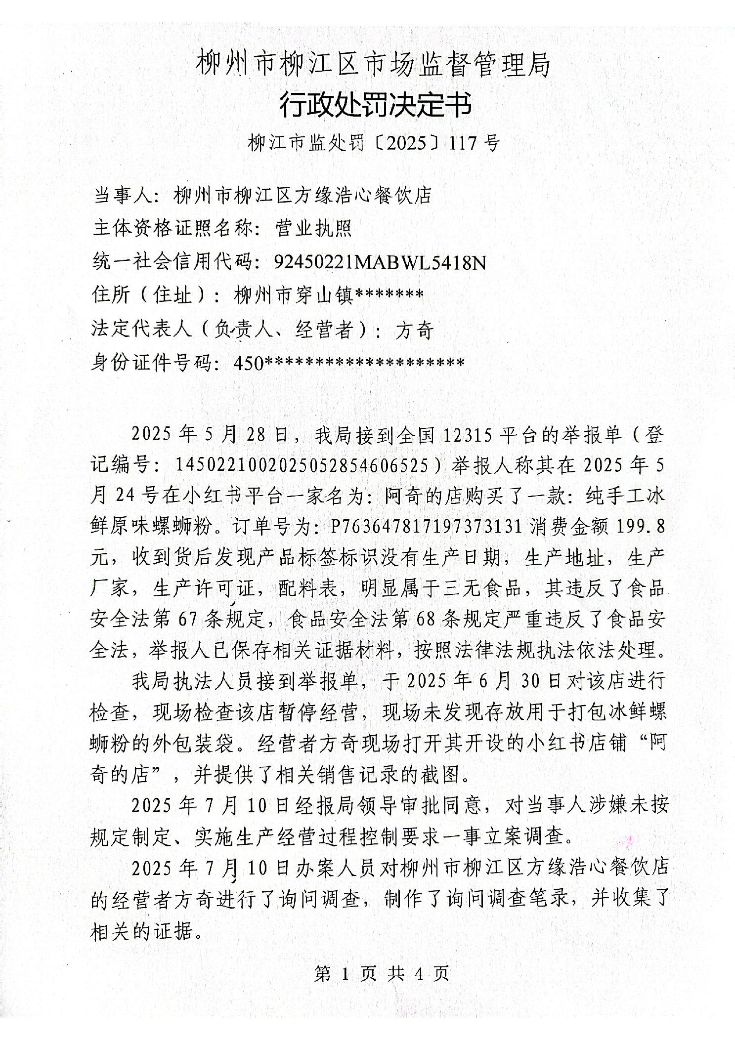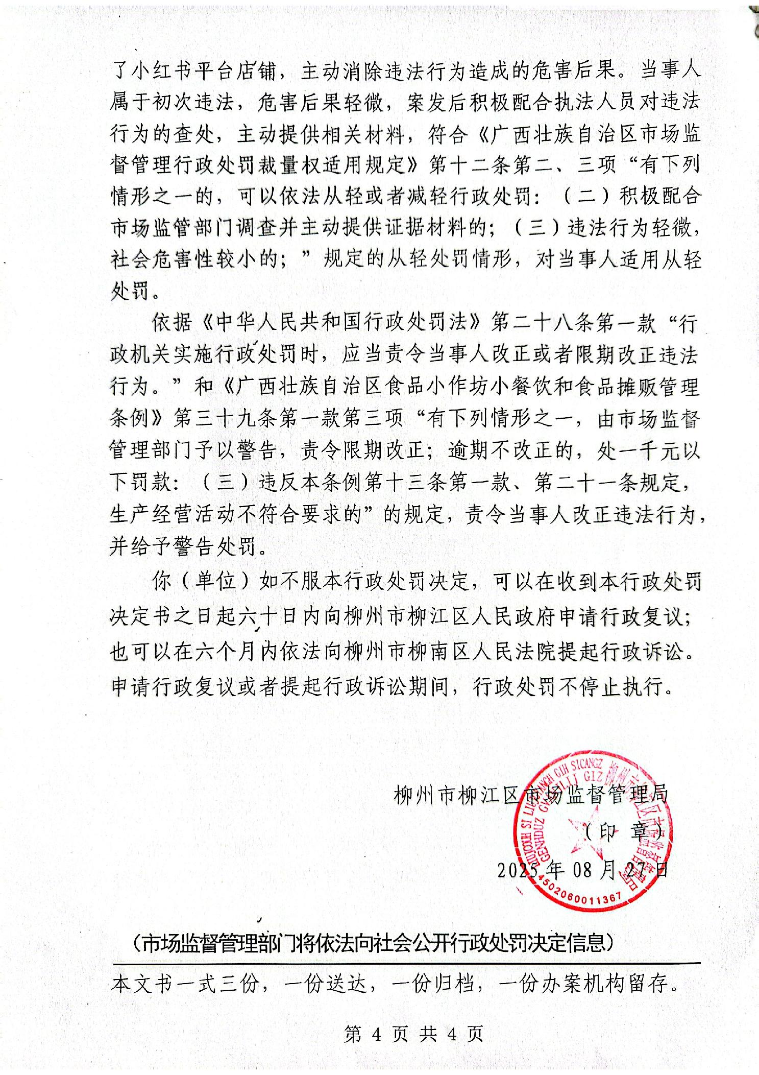 行政处罚决定书(柳江市监处罚[2025]117号)
