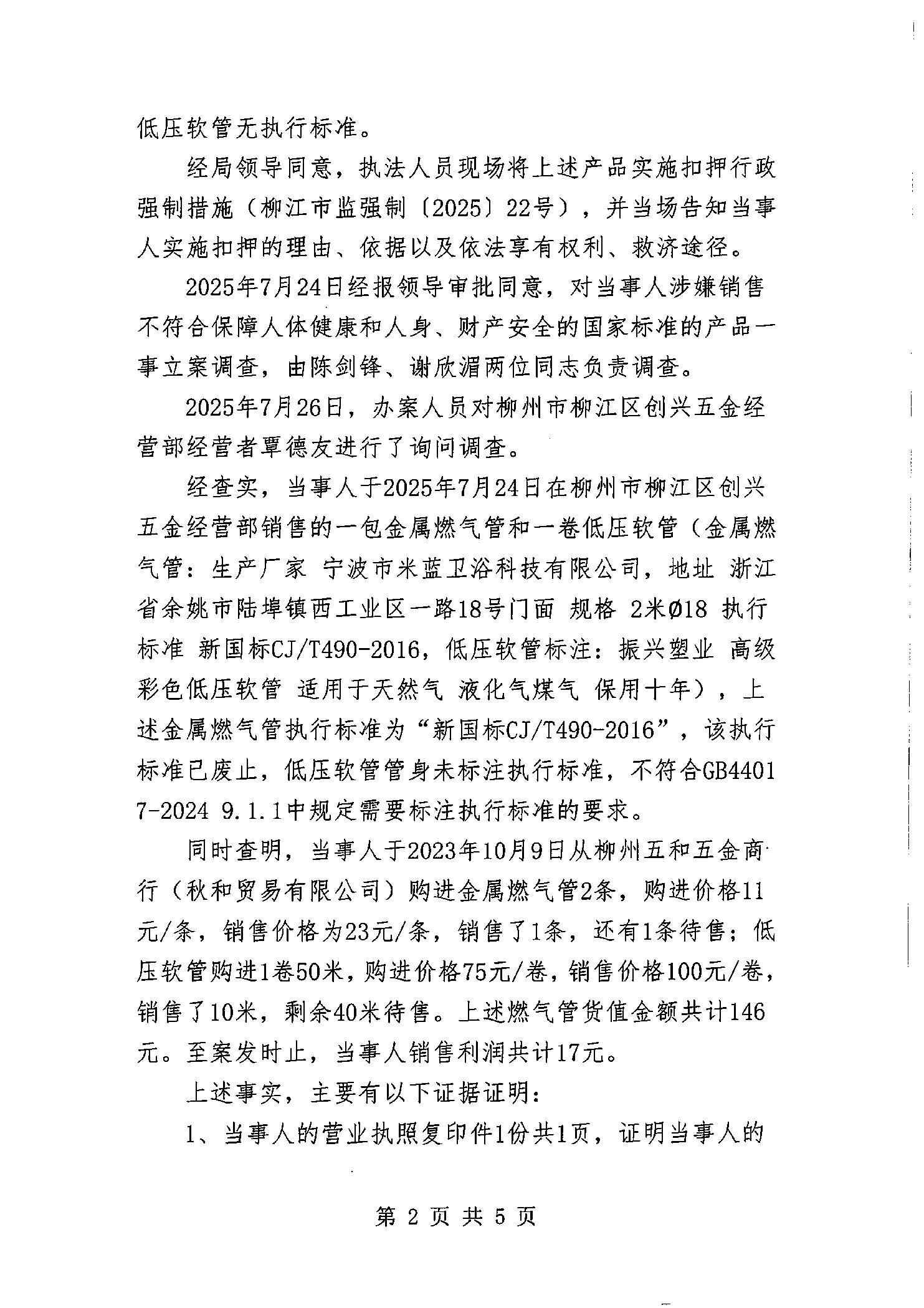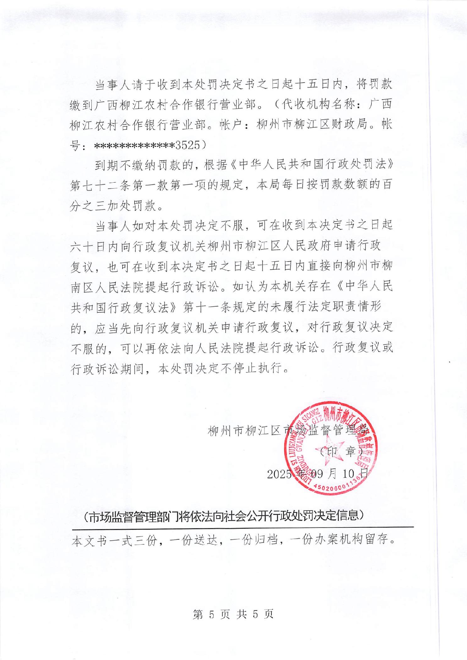 行政处罚决定书(柳江市监处罚[2025]122号)
