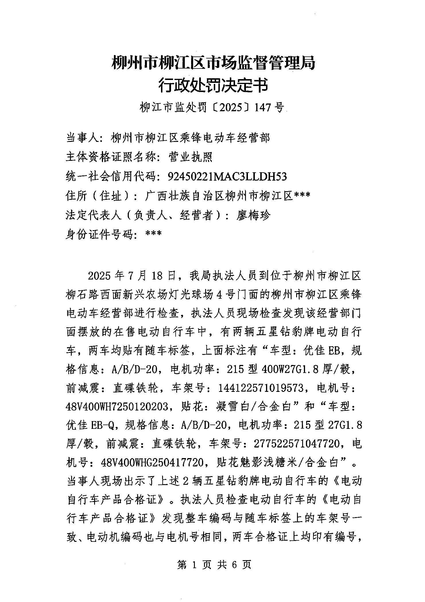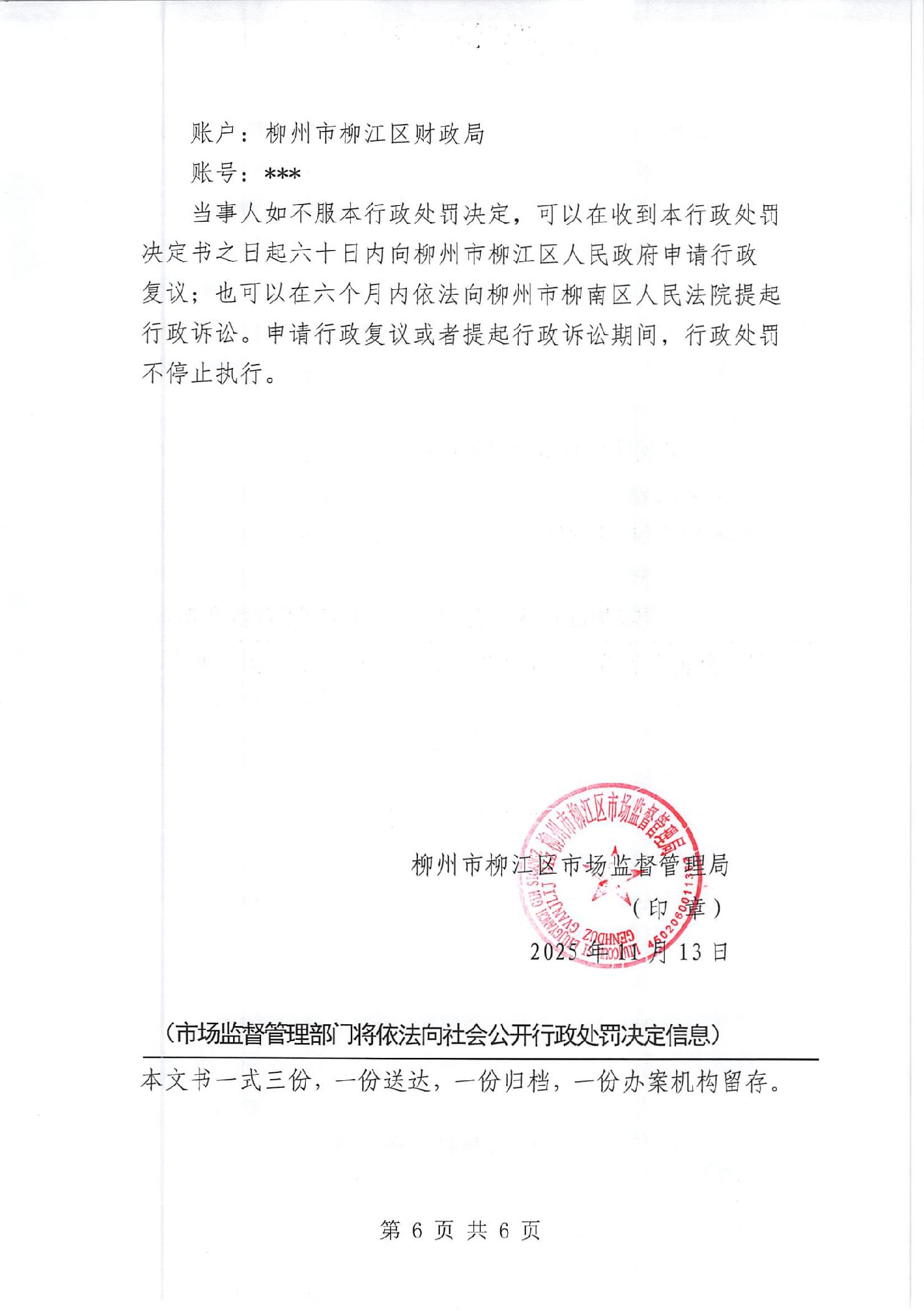 行政处罚决定书(柳江市监处罚[2025]147号)