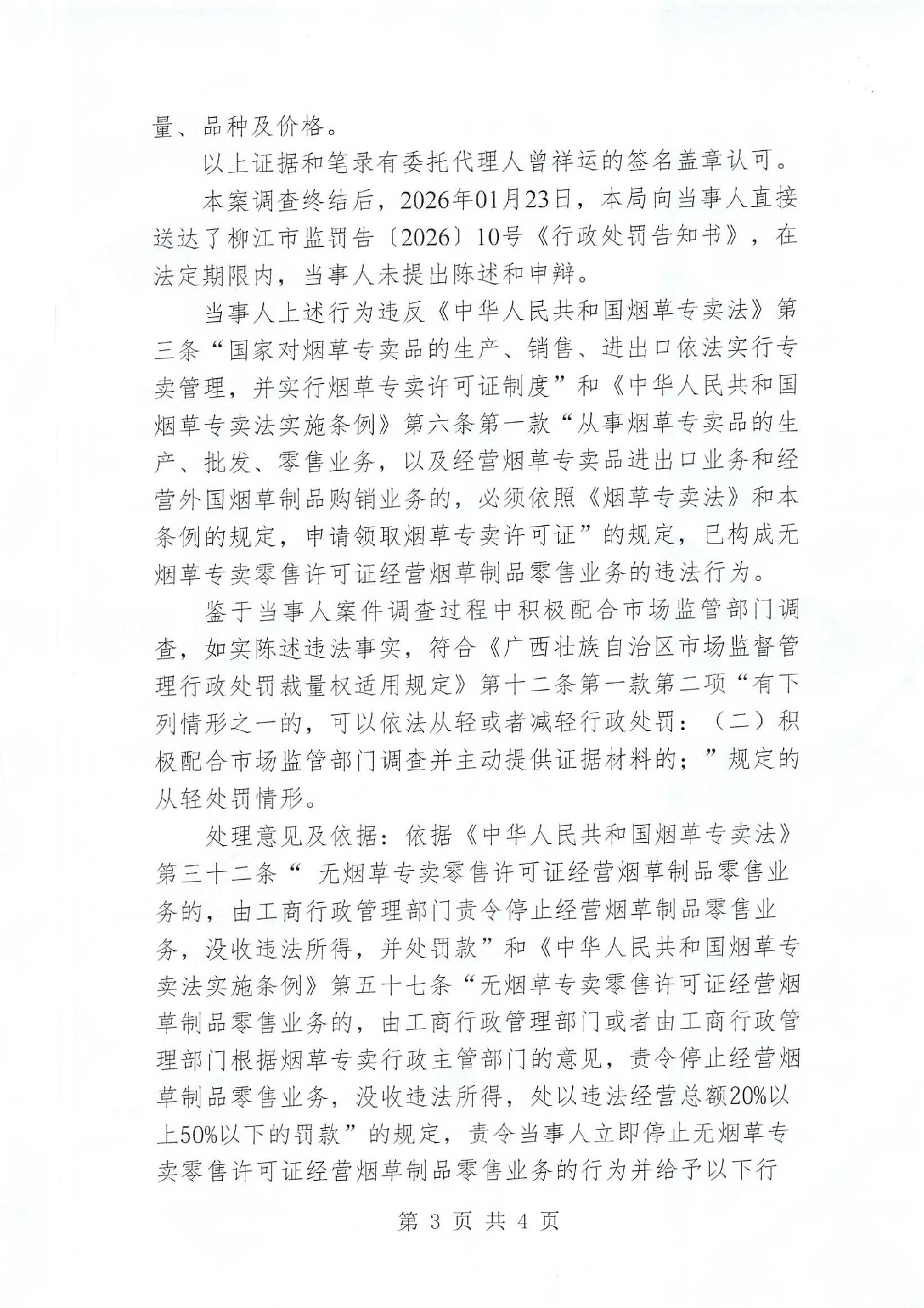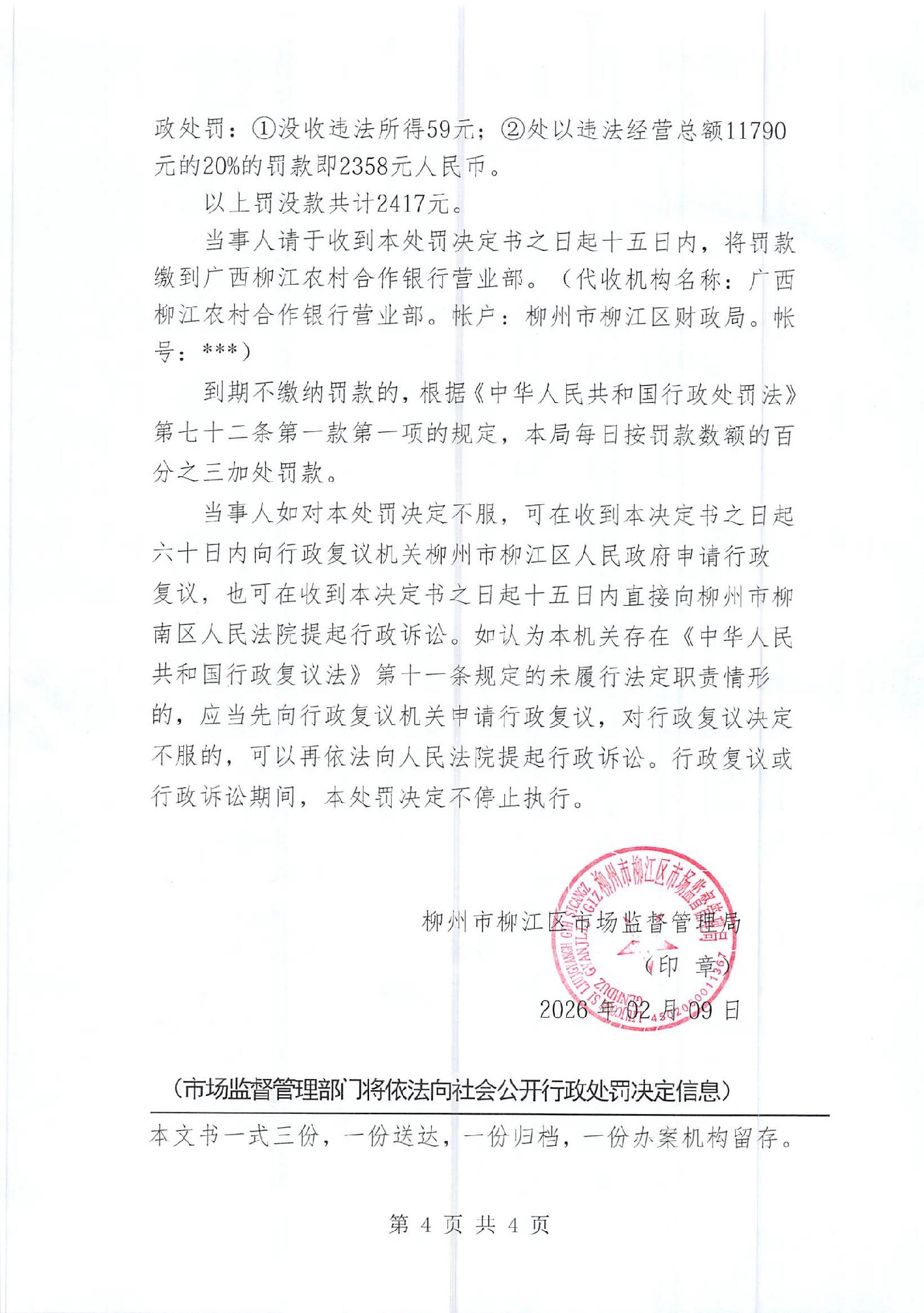 行政处罚决定书(柳江市监处罚[2026]21号)