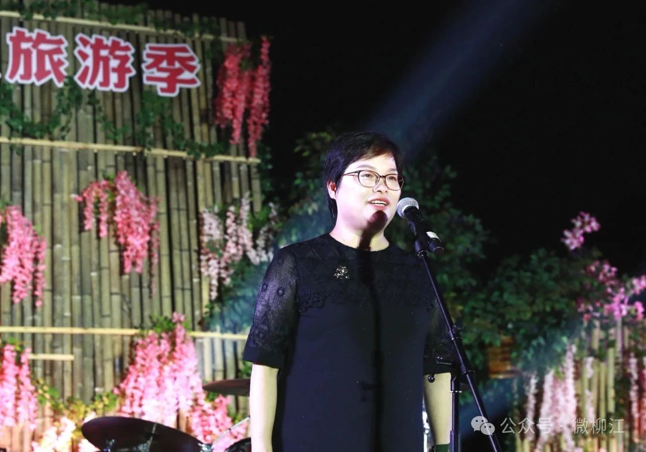 区委书记玉秋静宣布2025年柳江区荷花文化旅游季开幕。