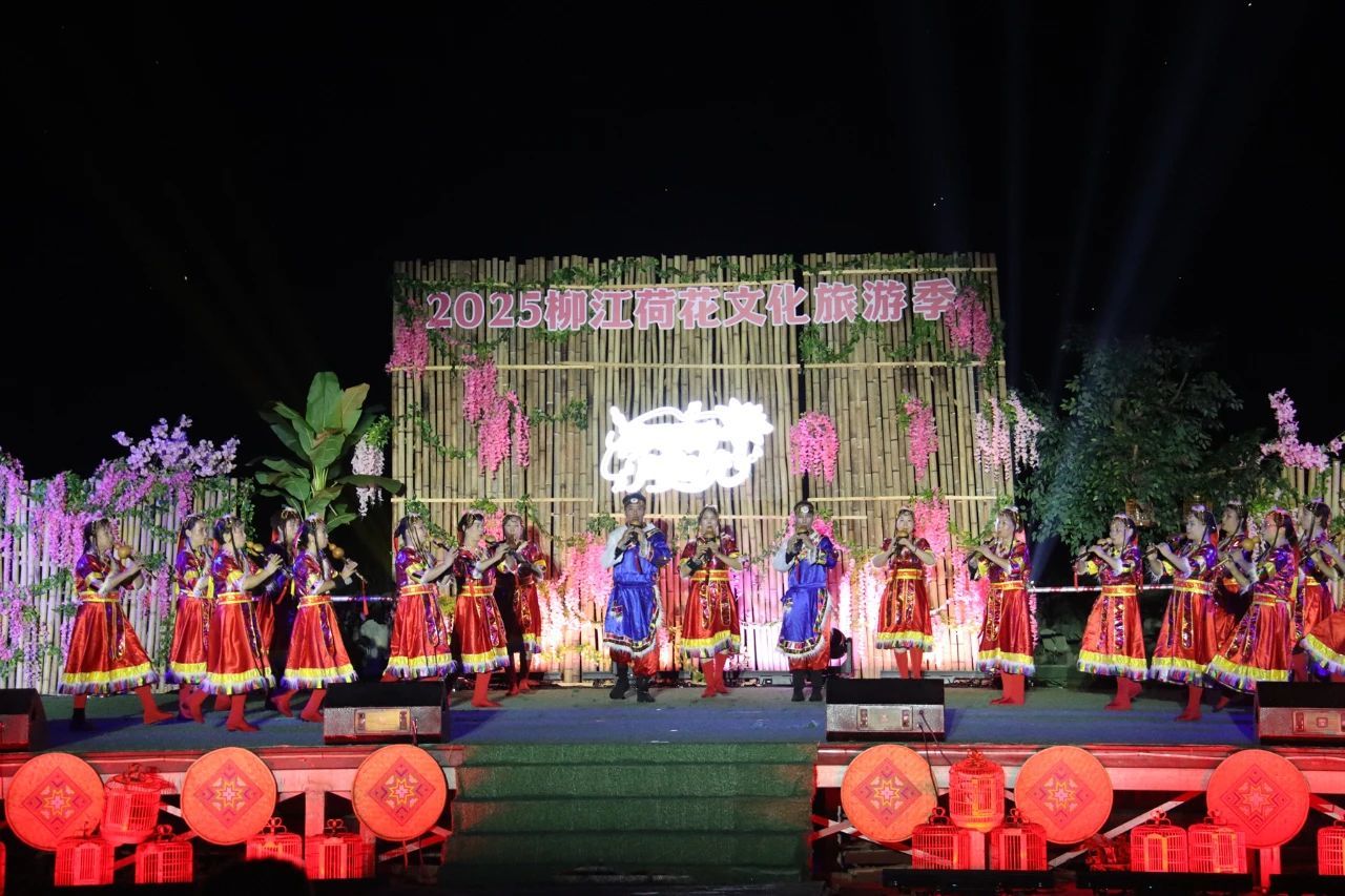 7月26日晚,2025柳江荷花文化旅游季“荷韵壮乡·歌舞传情”民族文化文艺演出在百朋荷苑景区主舞台璀璨启幕。本次演出以荷为媒、以歌会友,聚焦柳江民族特色与群众文化艺术成果展示,吸引众多市民游客驻足观赏,现场掌声与欢呼声此起彼伏,气氛热烈非凡。