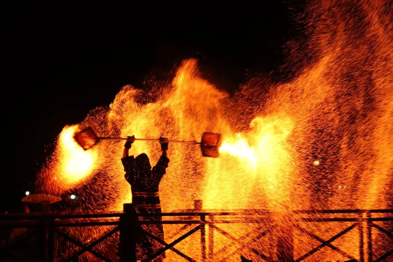 当晚,非遗绝技“打铁花”表演同步登场,在匠师的操控下,滚烫铁水化作漫天星火,点亮夜空的瞬间引得观众惊叹连连,为这场荷韵盛会再添一抹璀璨的非遗亮色。