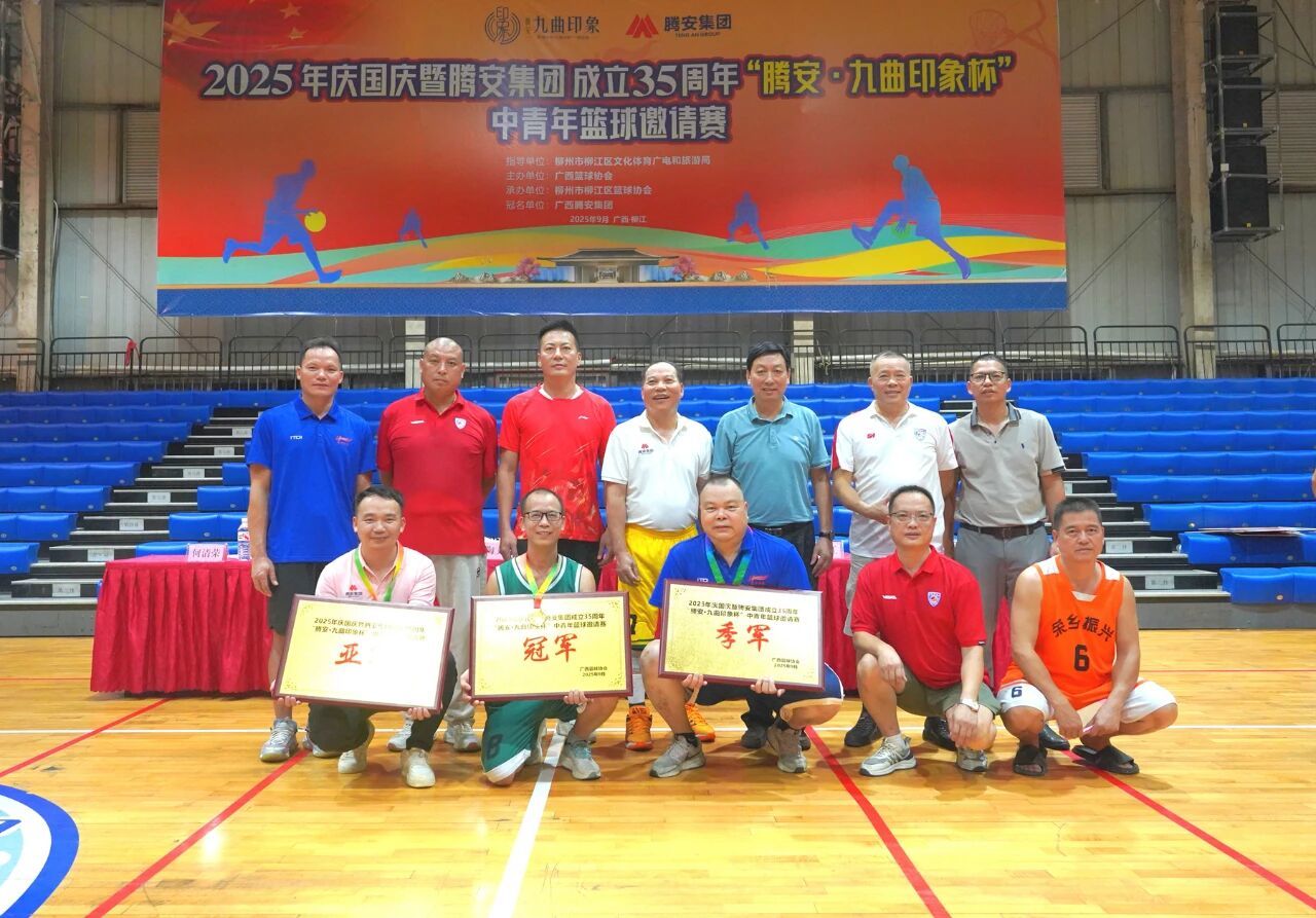 9月16日晚,柳江区体育中心篮球馆内欢呼声此起彼伏,2025年庆国庆“腾安·九曲印象杯”中青年篮球邀请赛圆满落幕。历经5天比拼,腾安·九曲印象代表队与武宣松勋批发代表队展开冠军对决,最终前者以66:83憾负,斩获赛事亚军;柳江区篮协代表队则以81:59战胜融水中老年代表队,夺得季军。