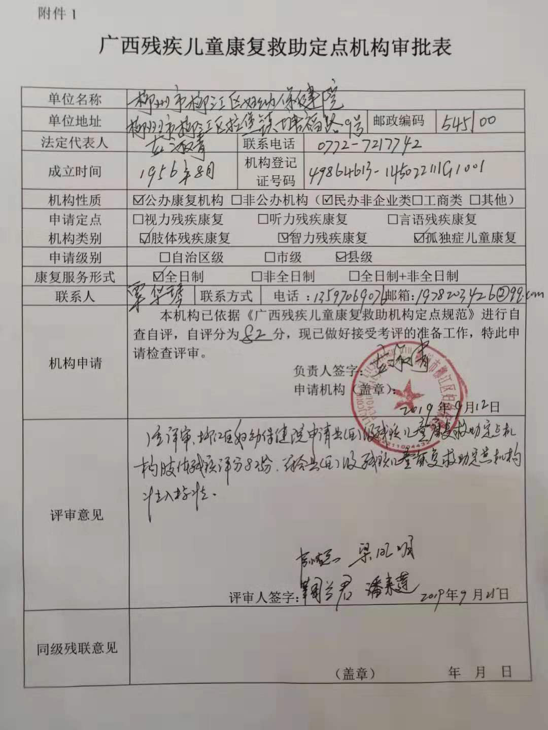为做好我区残疾儿童康复救助工作,加快推进残疾儿童康复救助机构建设,根据《广西壮族自治区人民政府关于印发广西残疾儿童康复救助实施办法的通知》(桂政发〔2018〕45号)和《自治区残联关于印发广西残疾儿童康复救助机构定点规范(试行)的通知》(桂残联字〔2019〕13号)等有关文件精神,经区残疾儿童康复救助机构评审专家组评审,确定柳江区妇幼保健院为肢体残疾、智力残疾和孤独症儿童康复救助县级定点机构,柳江区特殊教育学校为智力残疾和孤独症儿童康复救助县级定点机构。现将评审专家组的评审结果公示如下,公示期限5个工作日(2019年9月29日至10月10日),如有异议请在公示期间到区残联(地址:柳江区拉堡镇乐都路68号)反映,信件反映以寄信邮戳日期为准,逾期不予受理。