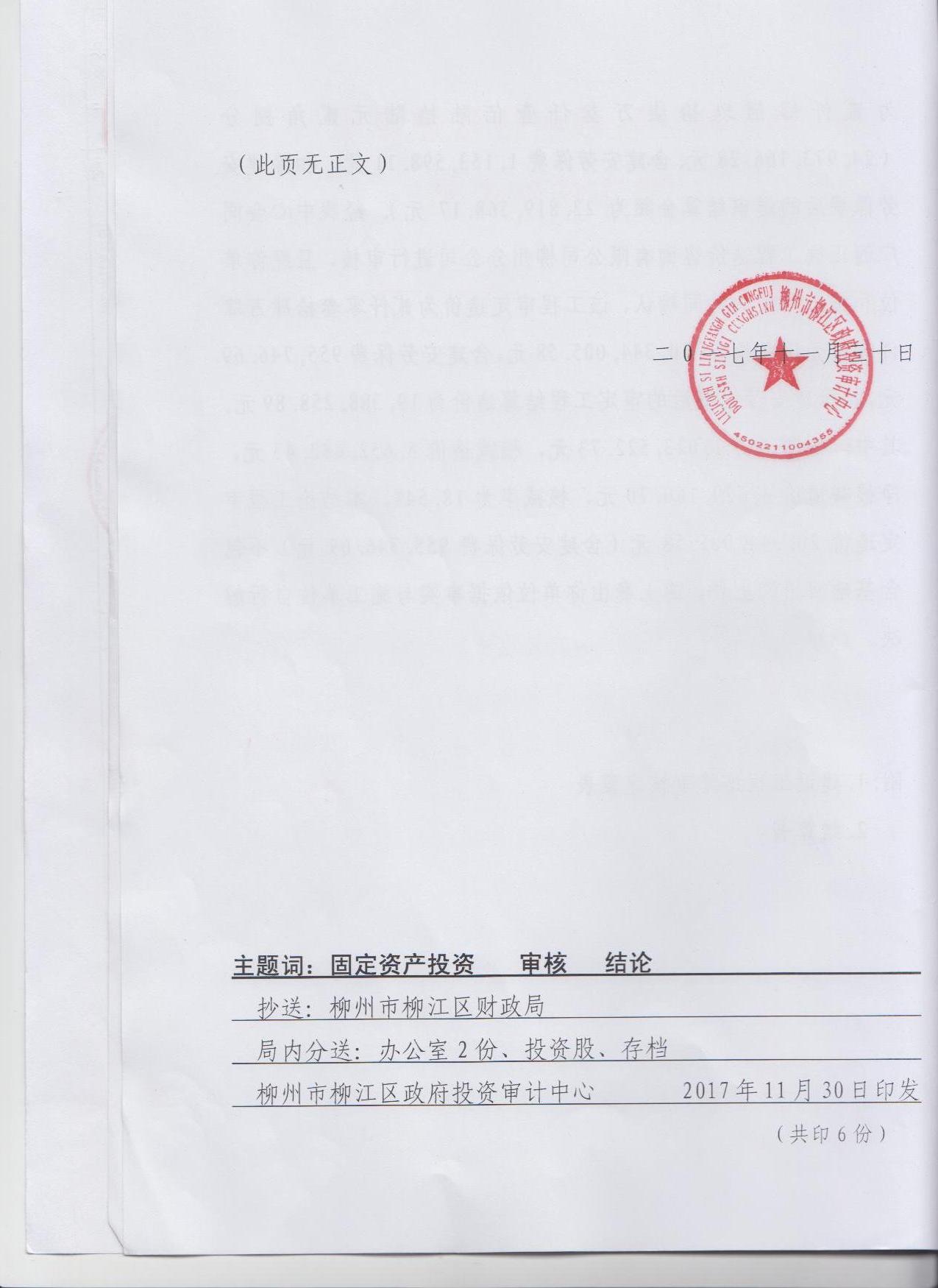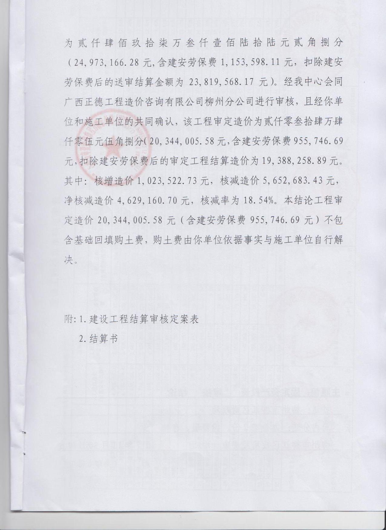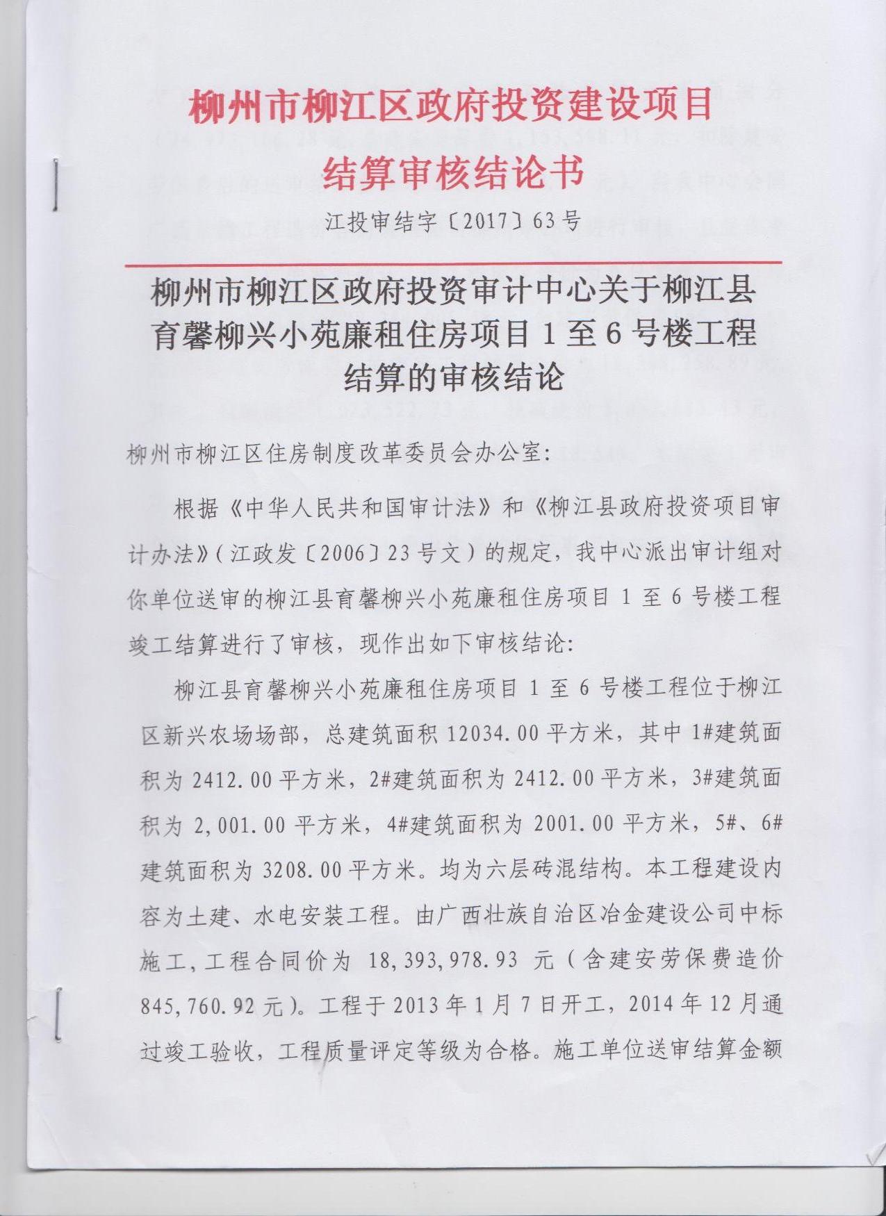 柳州市柳江区政府投资审计中心关于柳江县育馨柳兴小苑廉租住房项目1至6号楼工程结算的审核结论