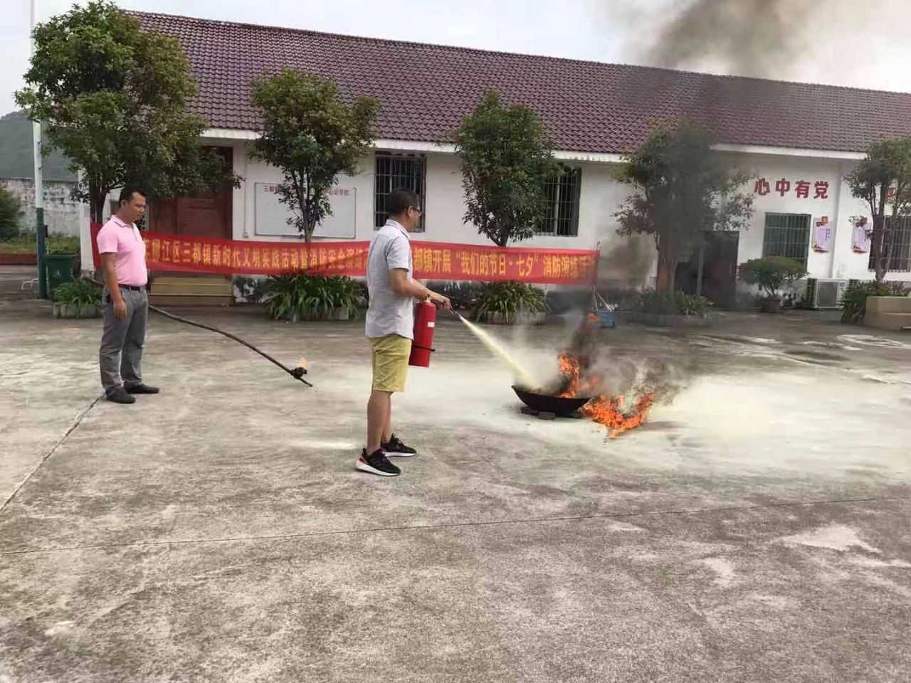 镇干部职工们先是在镇大礼堂内进行理论知识学习,大家认真听讲,积极发言,热情讨论,场面十分和谐;再加上黄教官培训经验丰富,培训内容生动、实用,案例分析透彻而通俗易懂,礼堂内学习氛围十分浓厚。理论学习结束后,大家在操场进行了灭火演练。先晃动灭火器瓶身使瓶内干粉松动,然后拔下保险销;左手拖住瓶底,右手握住把手,按下压把;对准火焰根部喷射,直至火焰熄灭……在黄教官的示范下,大家踊跃参与,正确地操作,准确地将演练火盆中的熊熊火焰熄灭,动手操练的过程既增添了培训的生动性与感染力,又保证了培训的效果,切实强化干部职工们防灾减灾救灾的能力。