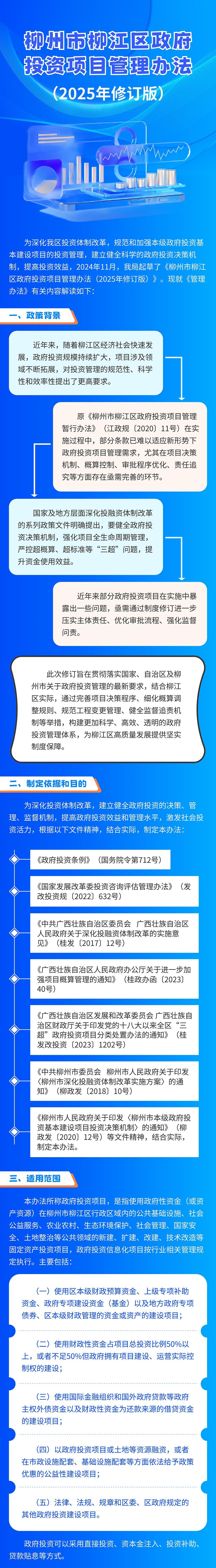 【文字解读】江政规〔2025〕1号 《柳州市柳江区政府投资项目管理办法(2025年修订版)》政策解读