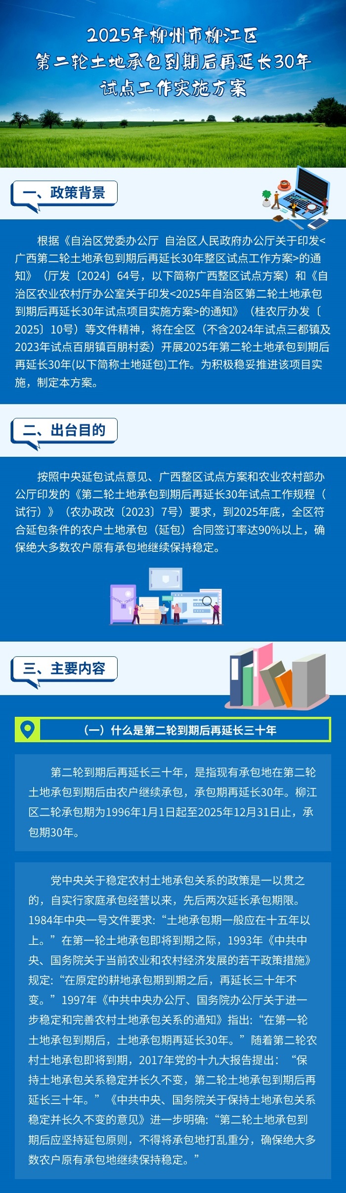 【文字解读】江政办发〔2025〕8号《2025年柳州市柳江区第二轮土地承包到期后再延长30年试点工作实施方案》的政策解读