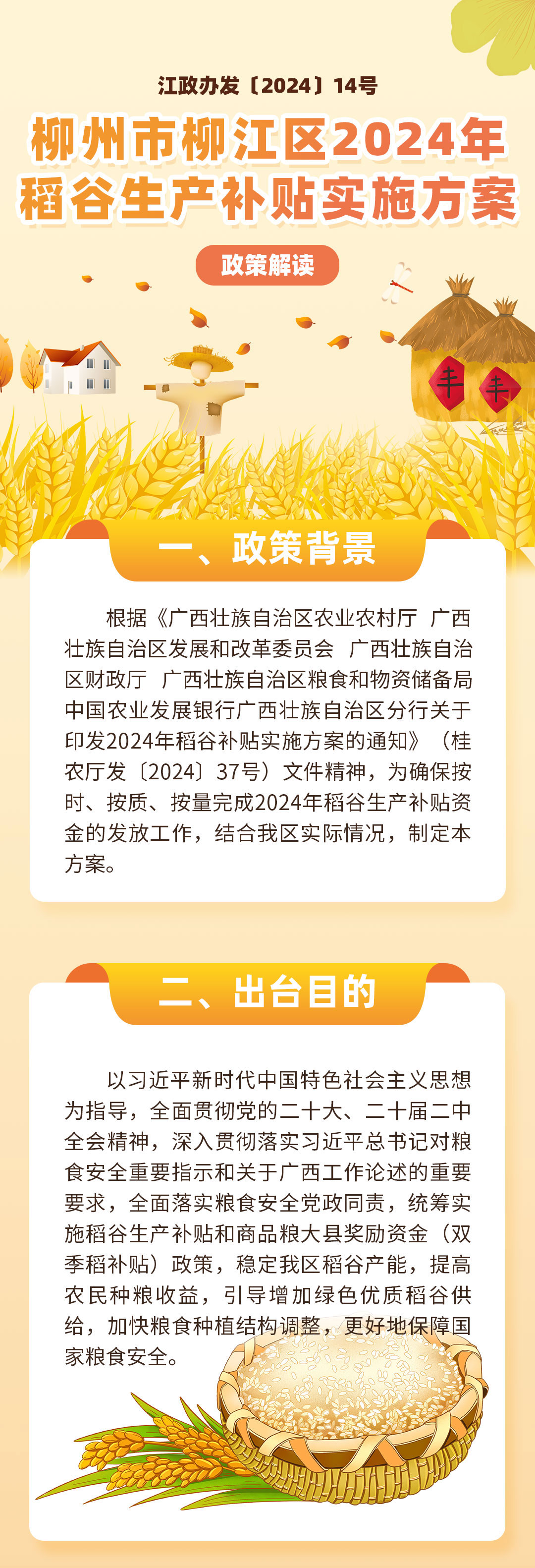 【文字解读】江政办发〔2024〕14号 《柳州市柳江区2024年稻谷生产补贴实施方案》政策解读