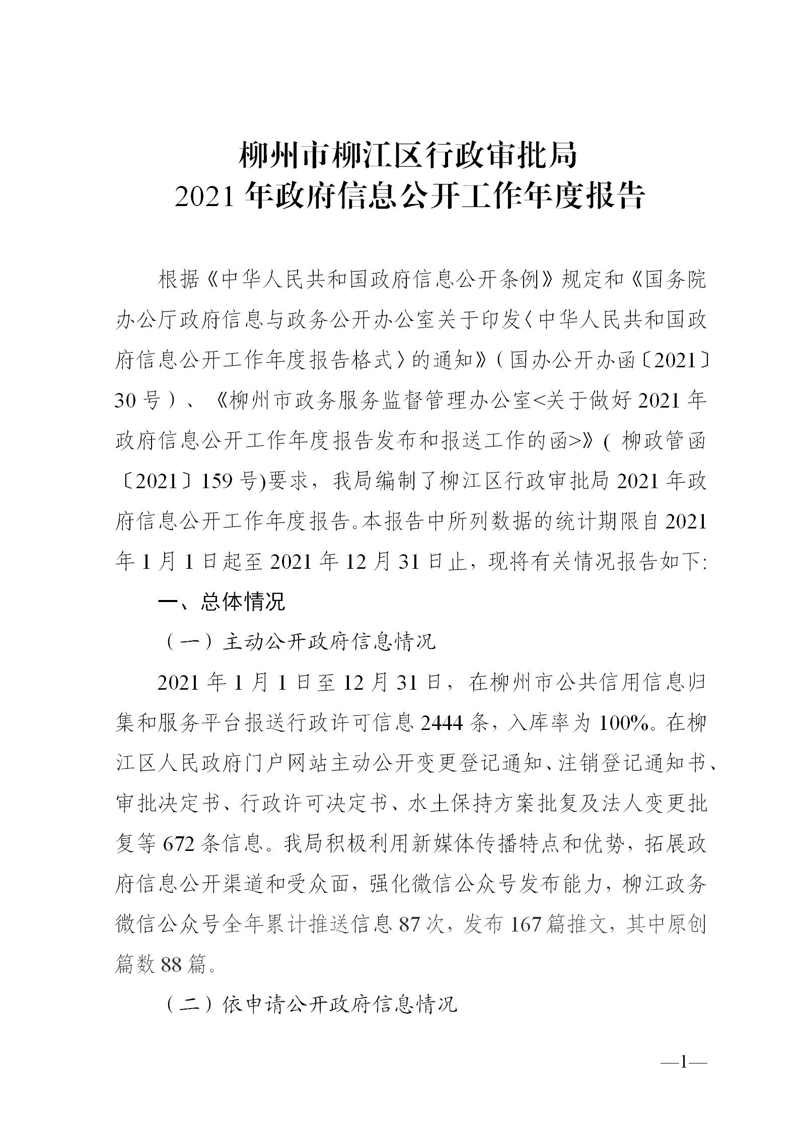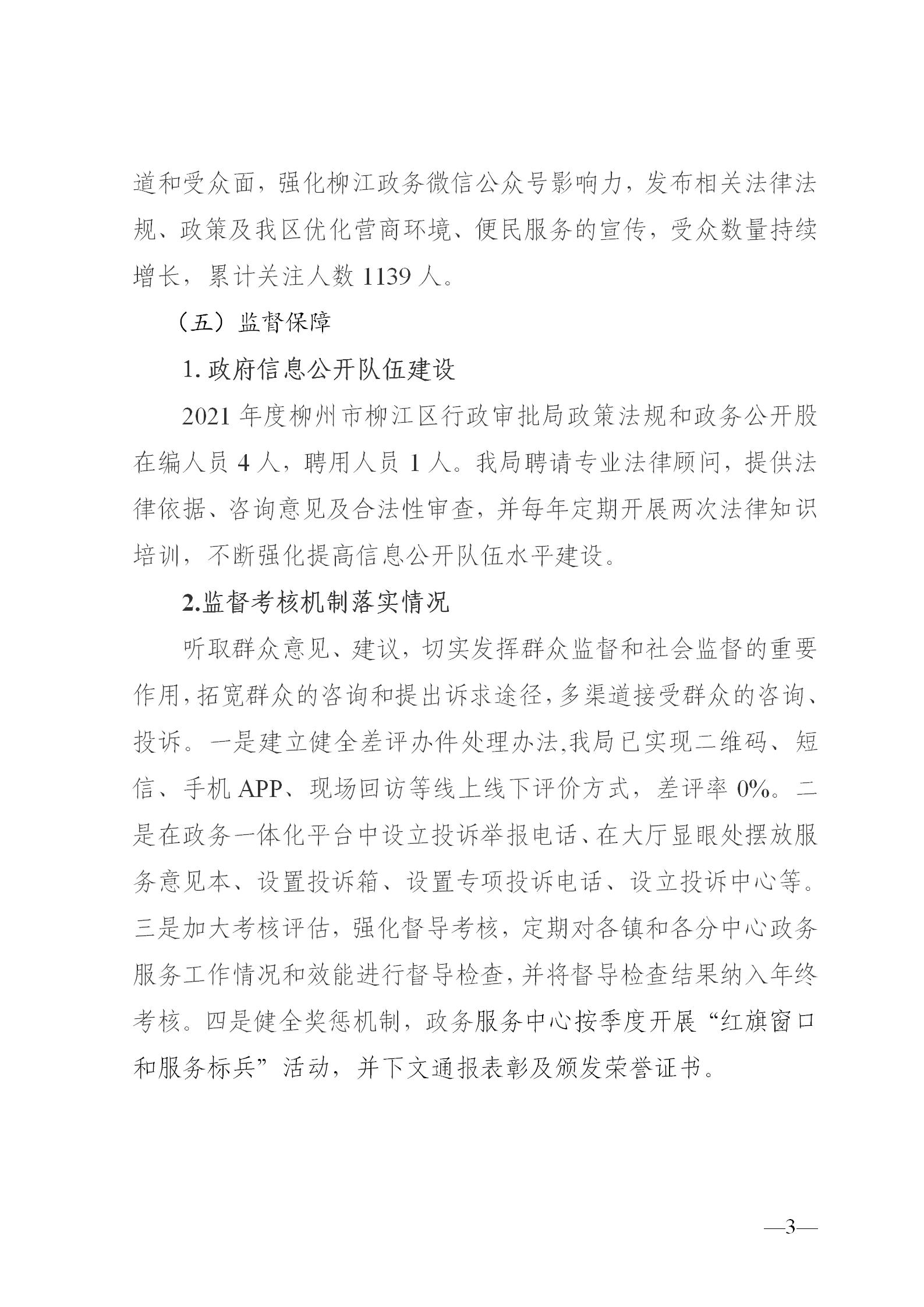 柳州市柳江区行政审批局2021政府信息公开工作年度报告