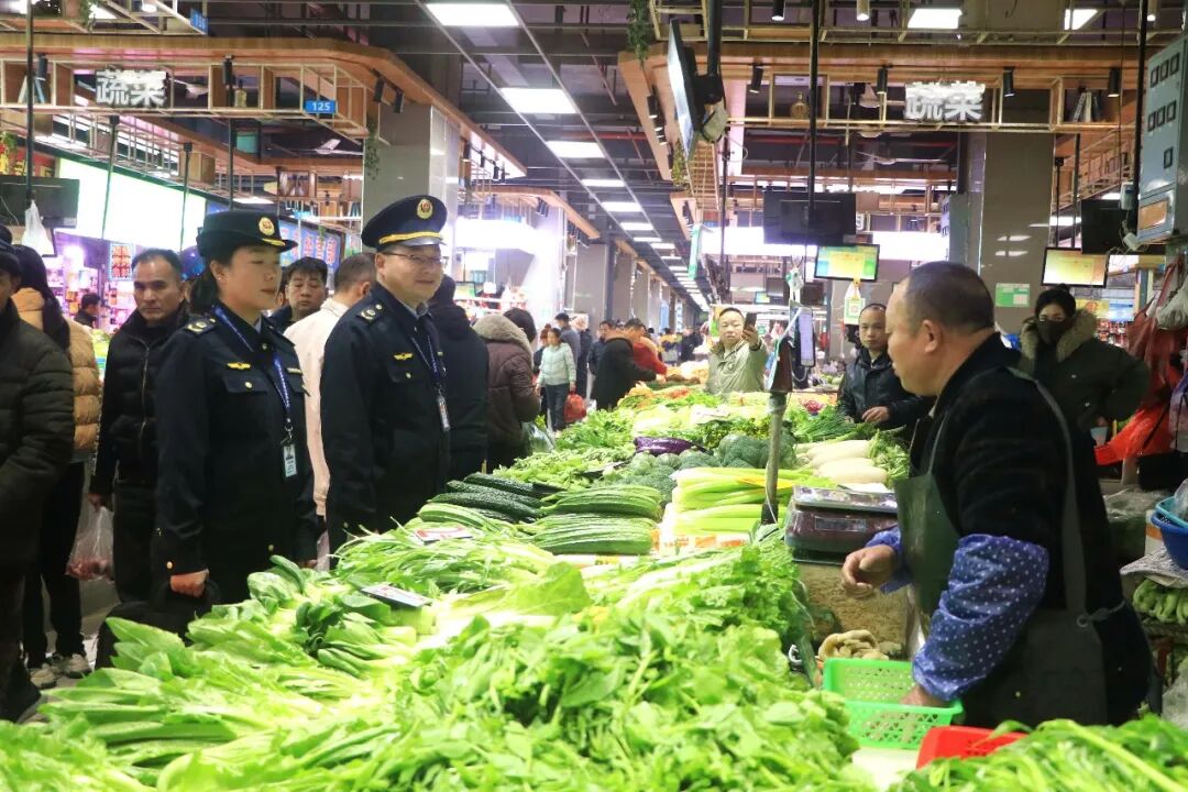 走进菜丁新城农贸市场,只见市场内货源充足、人声鼎沸,购销两旺的热闹景象尽显新春喜庆氛围。检查人员紧盯节日消费热点,对米面油、肉蛋奶、新鲜果蔬等民生商品开展排查,重点核查明码标价执行情况,严查价格欺诈、哄抬物价、低标高结等违规行为,督促经营者规范价格公示,做到标价清晰、货签对应。同时,检查人员详细询问商户进货渠道、储备量及补货机制,确保商品品类丰富、库存充足。