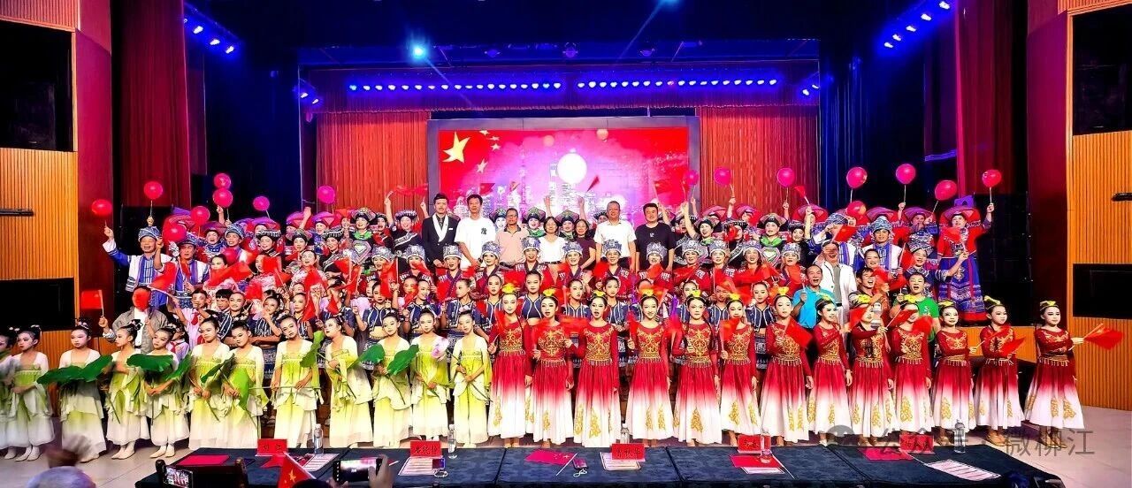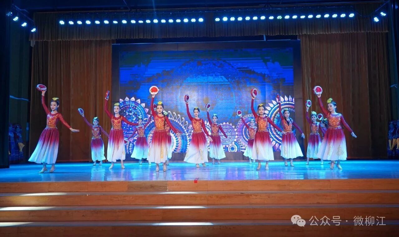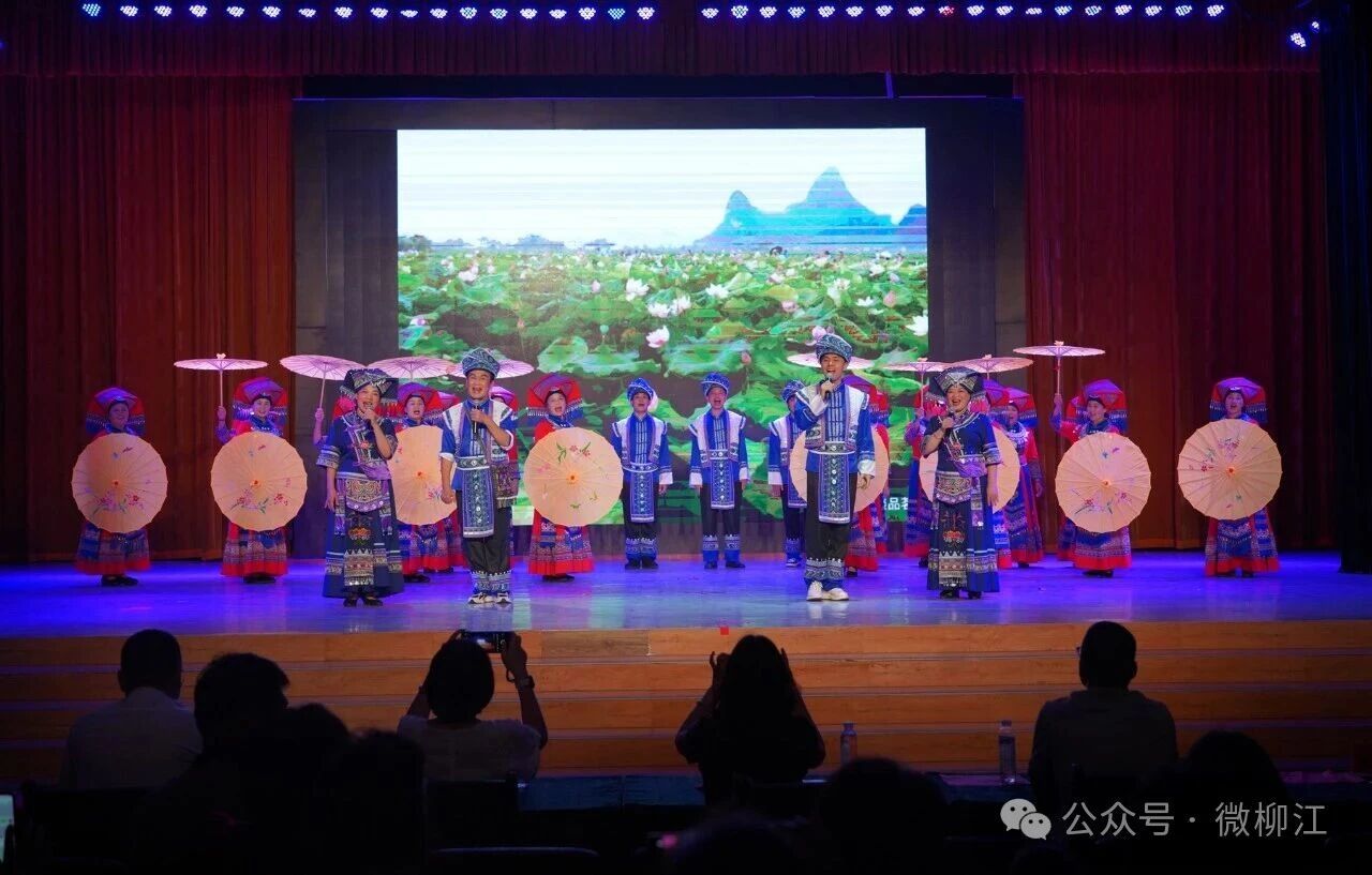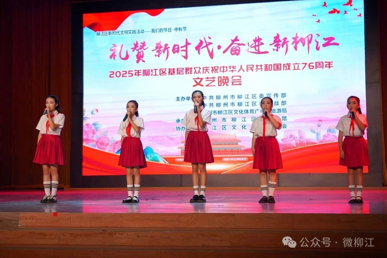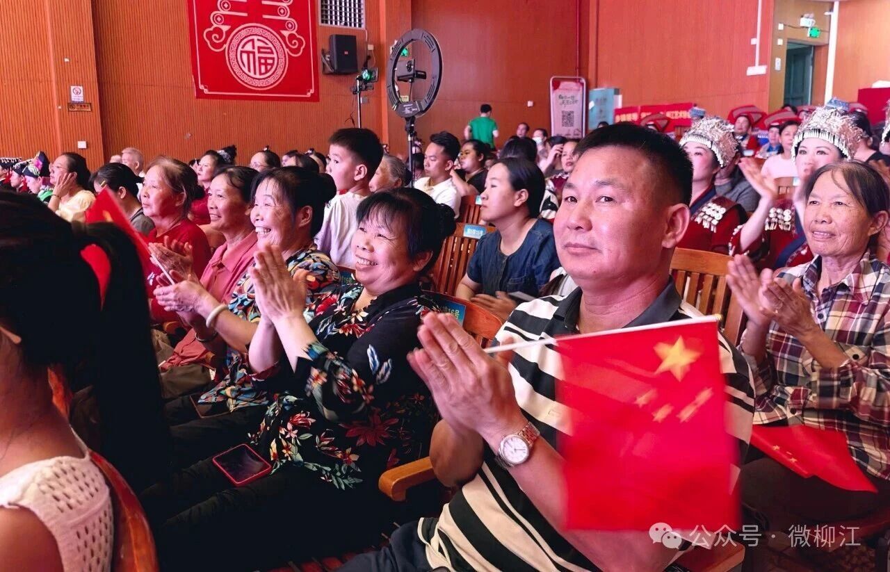 晚会在激昂的红色影像中拉开序幕,分为“红色记忆”“民族团结”“幸福生活”“筑梦未来”四个篇章。在“红色记忆”篇章中,朗诵《勿忘国耻 强国有我》以铿锵誓言点燃全场,彰显青年一代的使命与担当;“民族团结”篇章里,《三姐的歌》等节目巧妙融合民族风情与艺术表达,传递出各民族如石榴籽般紧密相连的深厚情谊;“幸福生活”篇章中,器乐合奏《乡村迎亲乐》生动勾勒出柳江百姓安居乐业的幸福图景;“筑梦未来”篇章的《壮乡歌舞颂中华》则将晚会气氛推向高潮。整场晚会共17个节目,精彩纷呈,掌声如潮,以多元形式表达对祖国的无限热爱与美好祝愿。