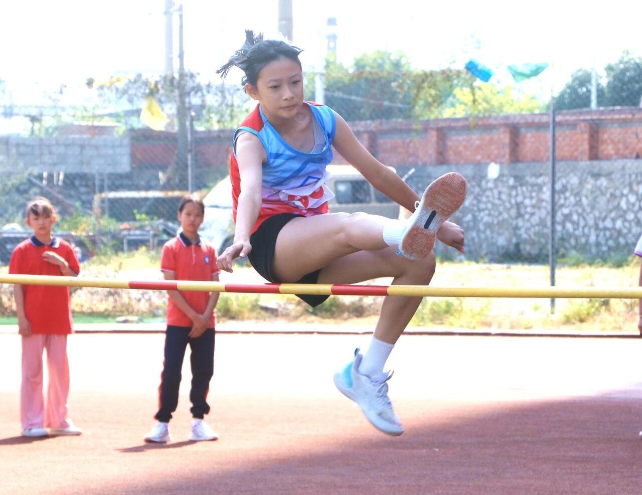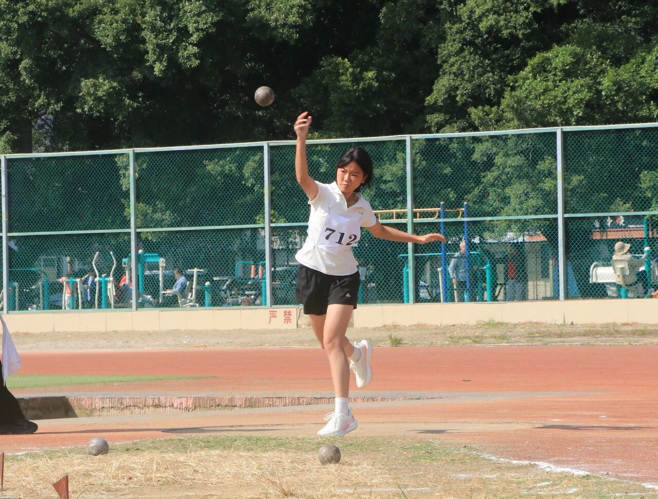 “各就位——预备——跑!”随着发令员指令落下,田径场瞬间沸腾起来。跑道上,运动员们身体前倾、双臂疾摆,奋力向终点奔去;跳高场地旁,运动员们眼神紧盯横杆,助跑时步伐稳健,轻盈越过横杆时全场屏息;实心球投掷区,运动员们扎稳马步、双手后拉,将力量凝聚于腰腹,掷出的实心球带着呼啸声,在天空划出沉甸甸轨迹……每项比赛都精彩纷呈,大家加油呐喊声与裁判哨声交织在整个赛场。