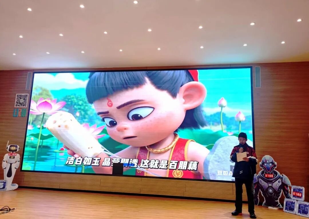 作品展示区内亮点纷呈,创意无限。参赛选手依次登台,从设计理念、实现路径到应用价值,全方位阐述作品构思。评委围绕创意性、程序逻辑、思维深度等维度进行现场点评与指导。柳州市思贤中学的刘煜杰同学展示了作品《哪吒为百朋藕打Call》:“我花了近两周时间,借助AI生成万亩藕海的壮美画面,并加入方言解说功能,希望用科技让更多人了解柳江玉藕、爱上家乡风光。”现场还涌现出智能垃圾分类助手、智慧农业管护系统等一系列贴近生活场景、服务地方产业的应用作品,充分展现青少年将科技融入现实、以创新驱动发展的潜力。