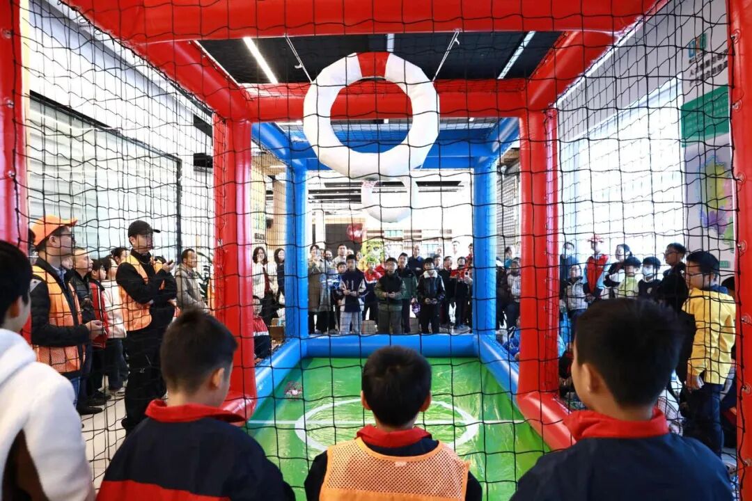 无人机足球赛场气氛高涨,呐喊助威声不绝于耳。迷你绿茵场上,球形无人机悬停待发,3V3对抗紧张激烈。小选手们手握遥控器,全神贯注,左手控制升降、右手调节转向,灵活操纵无人机穿梭、盘旋、冲刺。面对气流干扰,队员们配合默契,时而快速突破防线,时而巧妙拦截阻击,每一次精准射门都引来全场欢呼。
