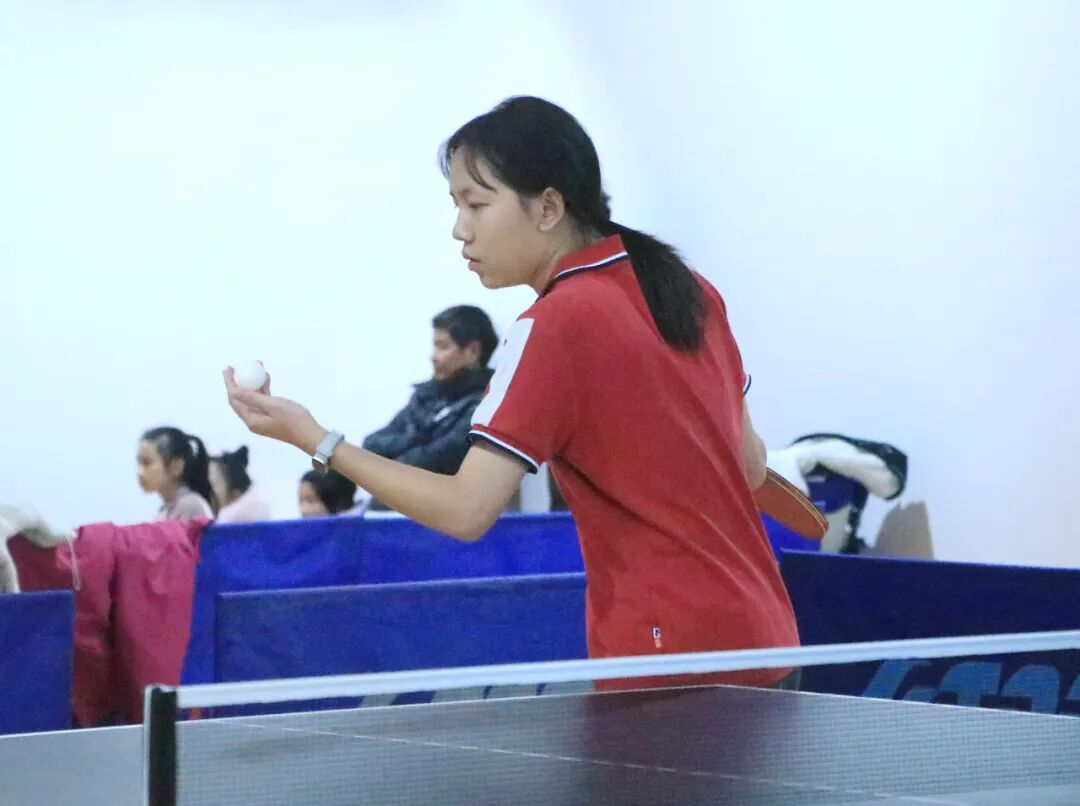 决赛现场,选手们精神抖擞,眼神专注。发球、搓球、扣杀、弧线球……一系列娴熟动作接连上演,白色小球在球台两端飞速穿梭,清脆的“乒乒乓乓”声此起彼伏。小学组选手虽动作略显稚嫩,但每一次挥拍都尽显认真;中学组选手则凭借精准的落点控制和灵活的战术调整展开博弈,精彩对决引得场边观众发出阵阵欢呼。赛场边,教练们实时指导战术,队友们互相加油鼓劲,充分展现出柳江学子顽强拼搏、团结协作的精神风貌。