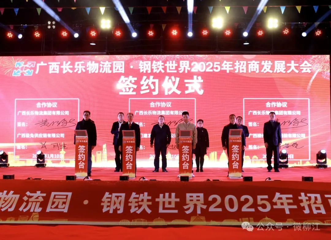 1月10日晚,广西长乐物流园·钢铁世界2025年招商发展大会在长乐物流园举行。