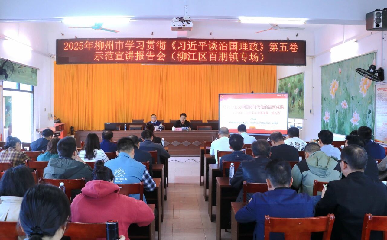 10月31日,2025年柳州市学习贯彻《习近平谈治国理政》第五卷示范宣讲报告会(柳江区百朋镇专场)举行。此次报告会是持续深化队伍建设攻坚行动的重要举措,其核心在于推动党的创新理论在基层落地生根、走深走实。百朋镇广大党员干部齐聚一堂,深入学习领会《习近平谈治国理政》第五卷的核心要义与精神实质,围绕新思想在基层实践中的路径与方法展开深入交流研讨,进一步统一思想、凝聚共识,为全面推进乡村振兴和基层治理现代化提供坚实的理论支撑和思想引领。