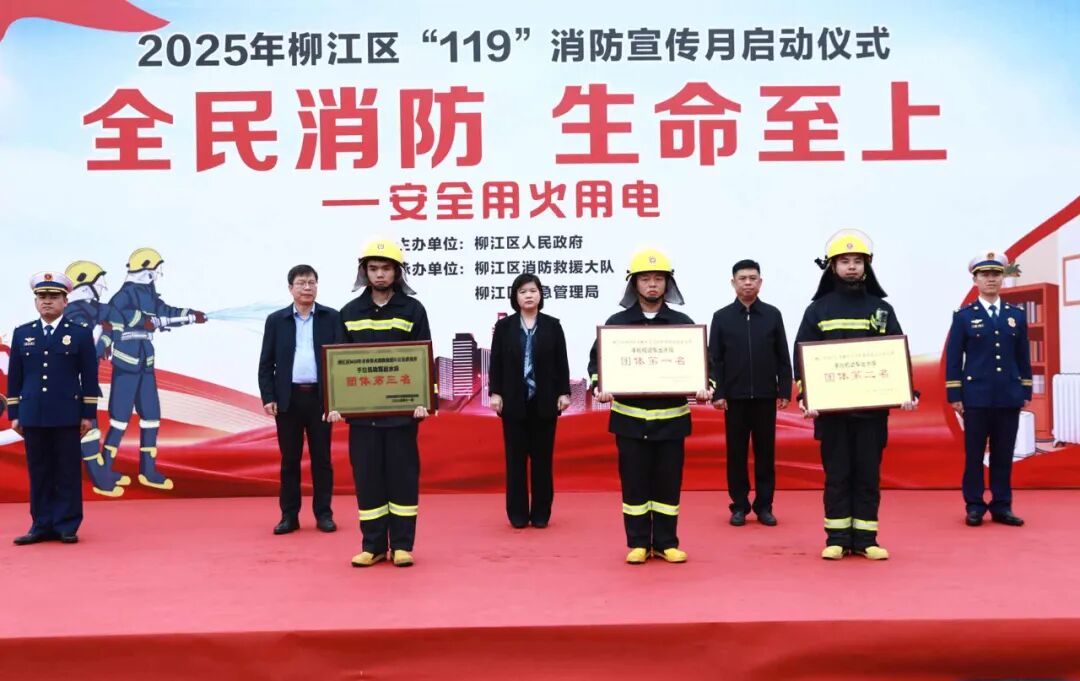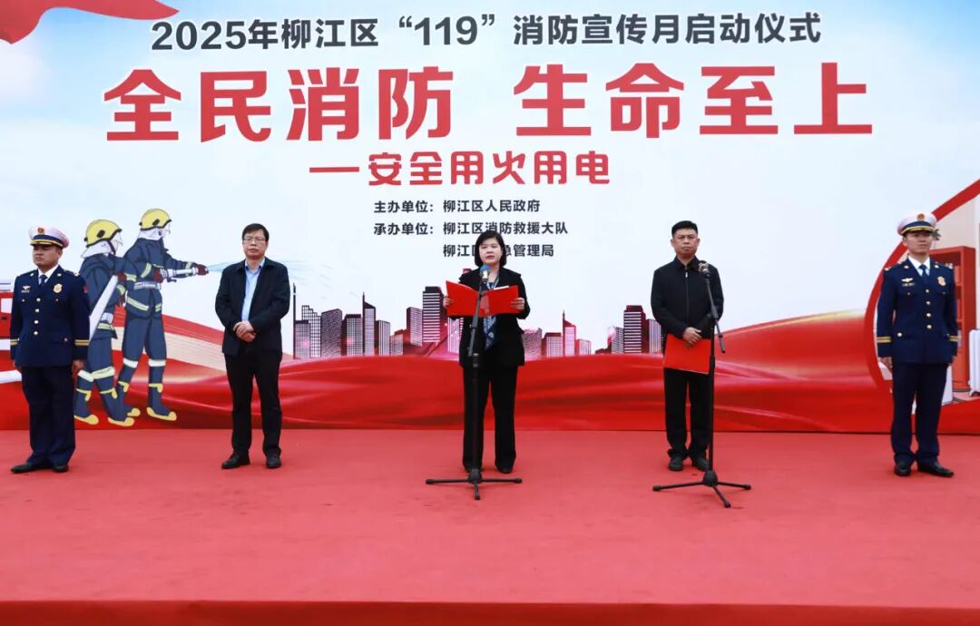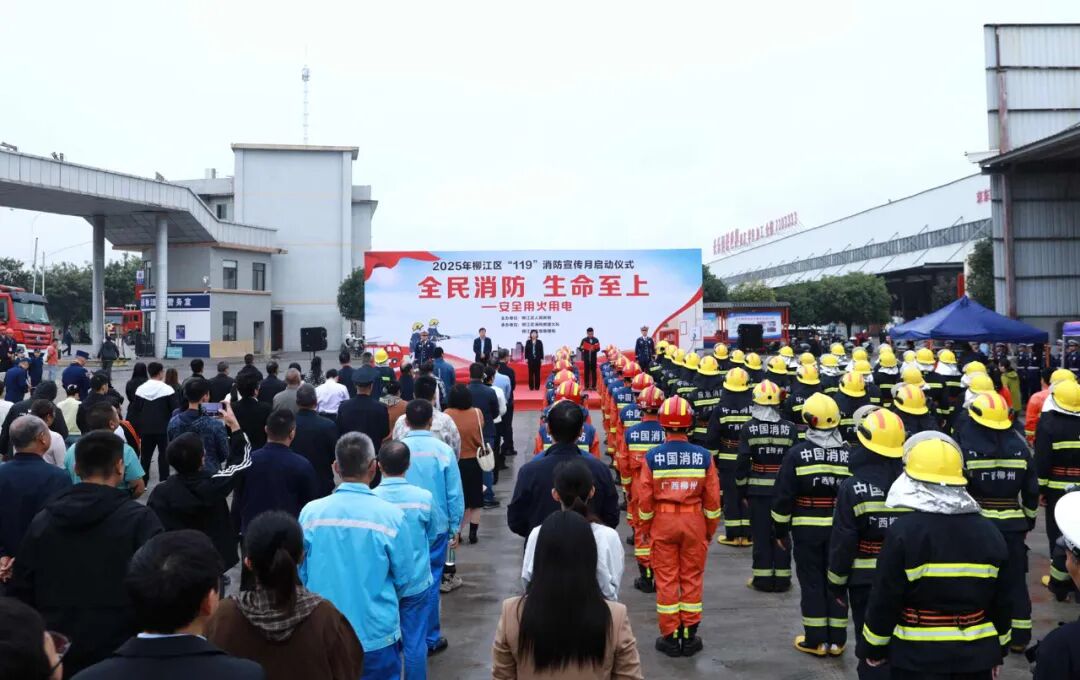 11月7日,2025年柳江区“119”消防宣传月启动仪式在柳江区长乐物流园举行,活动以“全民消防,生命至上——安全用火用电”为主题,旨在全面掀起消防安全宣传热潮,进一步深化公众消防安全意识,提升群众自救逃生能力,推动消防安全理念深入人心。