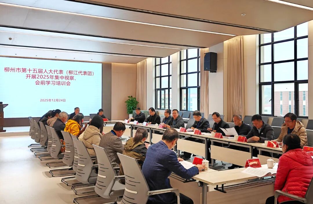 12月24日,柳州市第十五届人民代表大会代表(柳江代表团)开展2025年集中视察和会前学习培训,聚焦新质生产力培育与特色农业产业发展,为谋划新一年度及“十五五”时期发展凝聚共识。柳州市人大常委会副秘书长黄中,柳江区人大常委会党组书记、主任陈建军,柳江区委常委、区纪委书记、监委主任黄家星,柳江区人民政府副区长覃春前参加视察与培训。