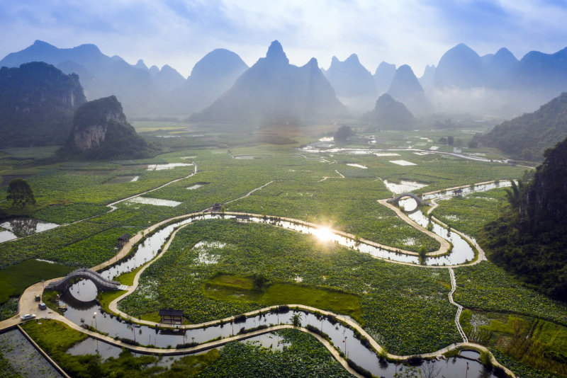 农业生产区——以下伦万亩荷塘种植区为主,辐射周边3.2万亩双季莲藕种植,通过荷莲产业链带动生态文化旅游产业,使游客认识农业生产、参与农事活动、体验农业生产乐趣。