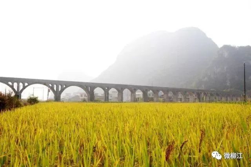 古朴庄重的渡槽与周边田园、溪流、奇峰、村庄结合,构成了一幅幅美丽的田园景观和人文景观。每年稻谷成熟的时节,金色稻田像是在渡槽下铺了一地的金子,沉甸甸的稻穗随风摆动,泛起层层稻浪,仿佛在擦拭岁月的尘埃,把人带回遥远的童年。一拨拨摄影爱好者沉醉在这片稻海中,嗅着泥土和稻谷的芳香,寻找童年的记忆,流连忘返。