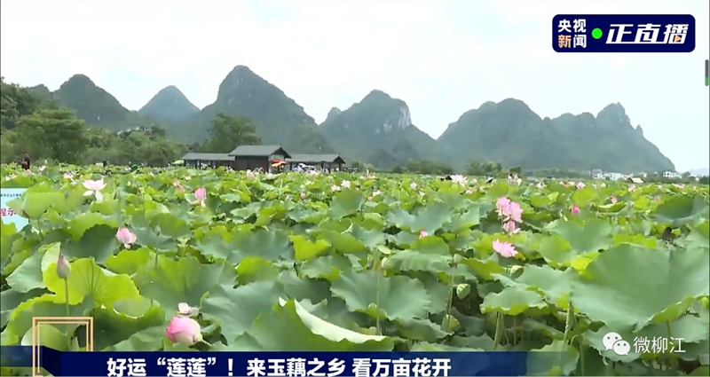 “接天莲叶无穷碧,映日荷花别样红。我现在所在的位置就是广西柳州市柳江区百朋镇的万亩荷海,栈道两侧成片的荷花盛情开放,吸引了不少游客前来打卡......”7月10日上午11时,央视新闻客户端以《好运“莲莲”!来玉藕之乡 看万亩花开》为题,通过直播的方式向全国人民展示了柳江万亩荷花竞相绽放的盛况,以及柳江乡村振兴产业蓬勃发展、旅游业欣欣向荣的独特魅力。