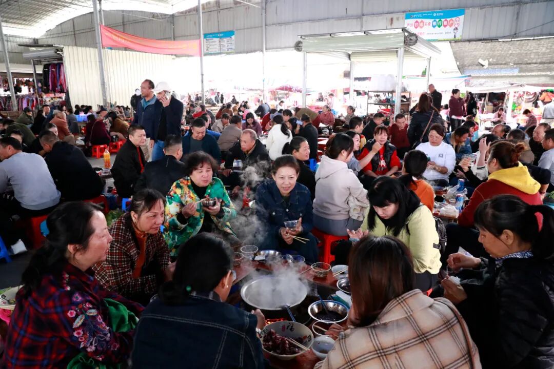 但成团早市“打边炉”突然火爆,是在近期。“很多人从柳州市区赶过来,有些人清晨五六点钟就到了,大家就图个新鲜。”成团镇镇长赖宇泉说,最多的时候,整个市场摆了200桌。“听说这里‘打边炉’很热闹,也过来凑热闹。”柳州市区居民卢萍萍说,她和好友一大早就赶到成团菜市场,选购新鲜食材后,再给20元锅炉费,就能享受乡村的“烟火气”,体验生活的“松弛感”。