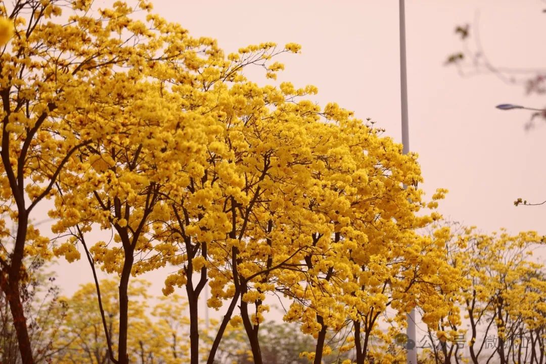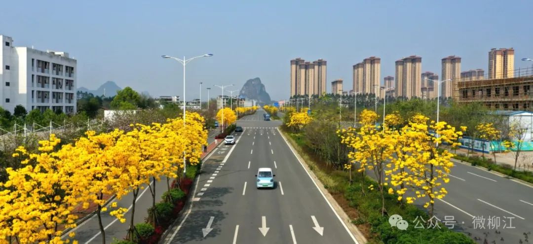 阳春三月,万物复苏,柳江区的黄花风铃木迎来一年一度的绚烂时刻。漫步在柳江新城区南三路,数百棵黄花风铃木竞相绽放,金黄色的花朵如诗如画,构成了一幅春日的绝美画卷,吸引着众多市民和游客纷至沓来,驻足观赏、拍照打卡。