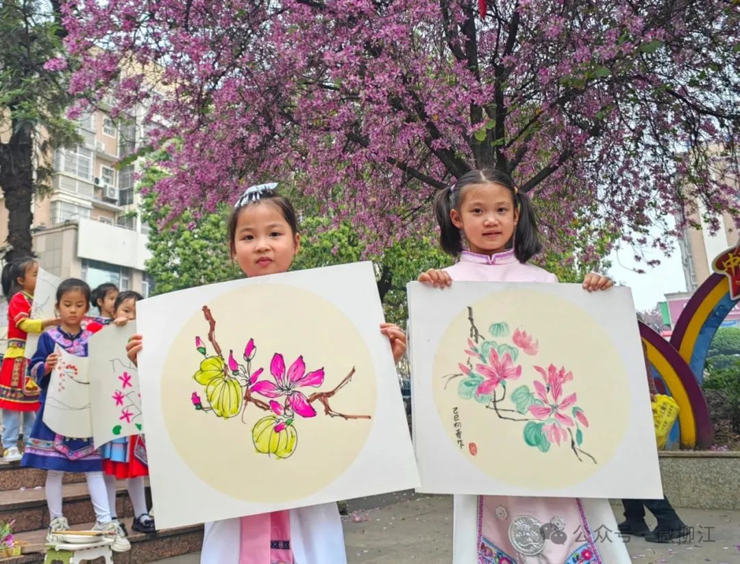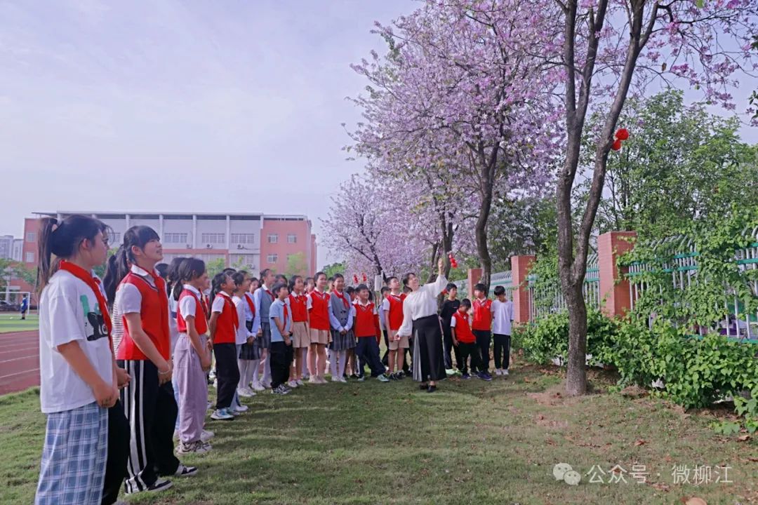 在柳江区各中小学,紫荆花也成校园生活中的主角。孩子们在花丛中欢快地唱着山歌,美术教室里,他们用画笔描绘紫荆花的美丽。柳州市思贤小学学生王銚瑞以《童趣》为题赋诗一首:“思贤园里紫云烘,碎玉飞琼戏晚风。拾瓣簪头滑难驻,追呼又向小亭东。”孩子们用歌声、画笔和文字,表达对紫荆花的喜爱和对自然的热爱。