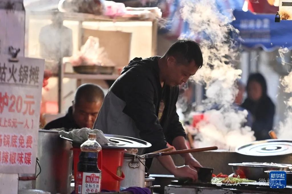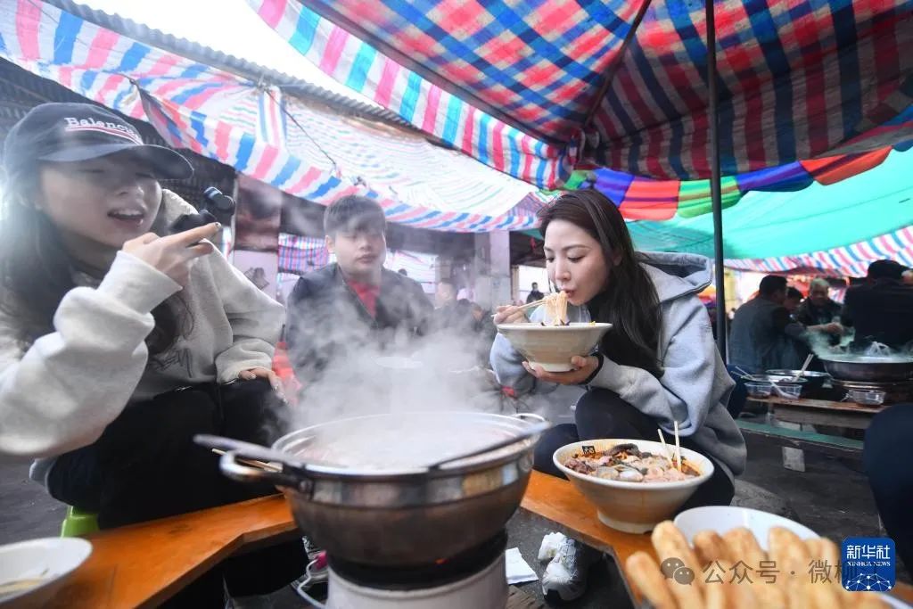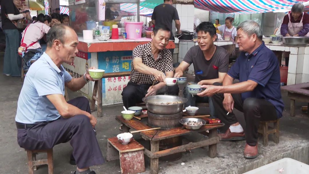 小煤炉火锅、简易的桌椅、现切的新鲜食材,大家围炉而坐,互相聊着家长里短,欢声笑语间如共进邻里百家宴……因其独有的烟火气和浓浓的人情味,成团镇早市走红网络,吸引越来越多市民和游客前来打卡,体验别具风格的乡村早市文化。