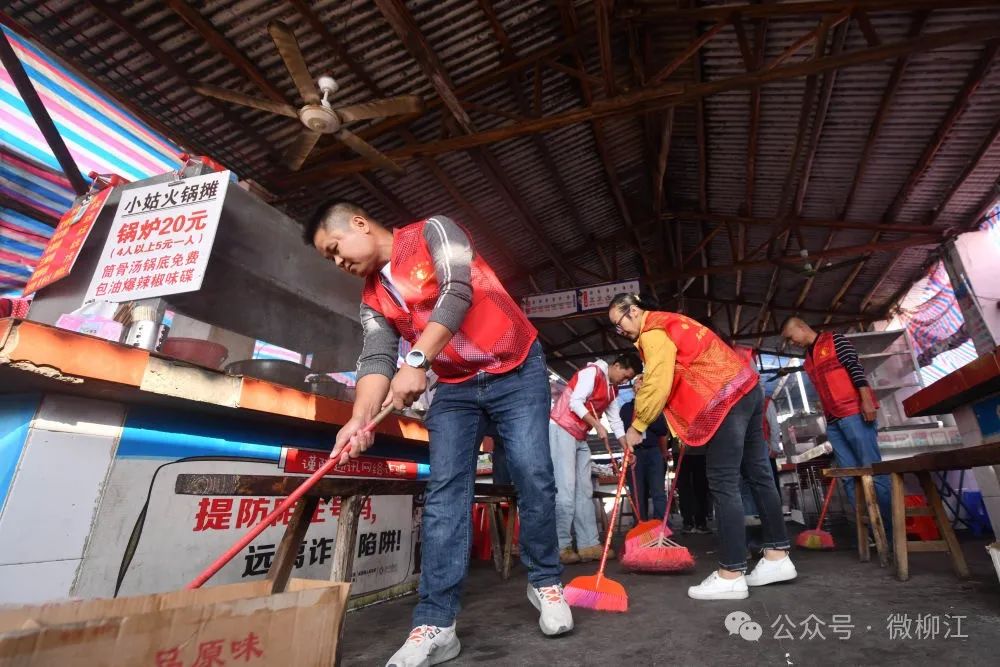 在柳州市柳江区成团镇农贸市场早市,志愿者在