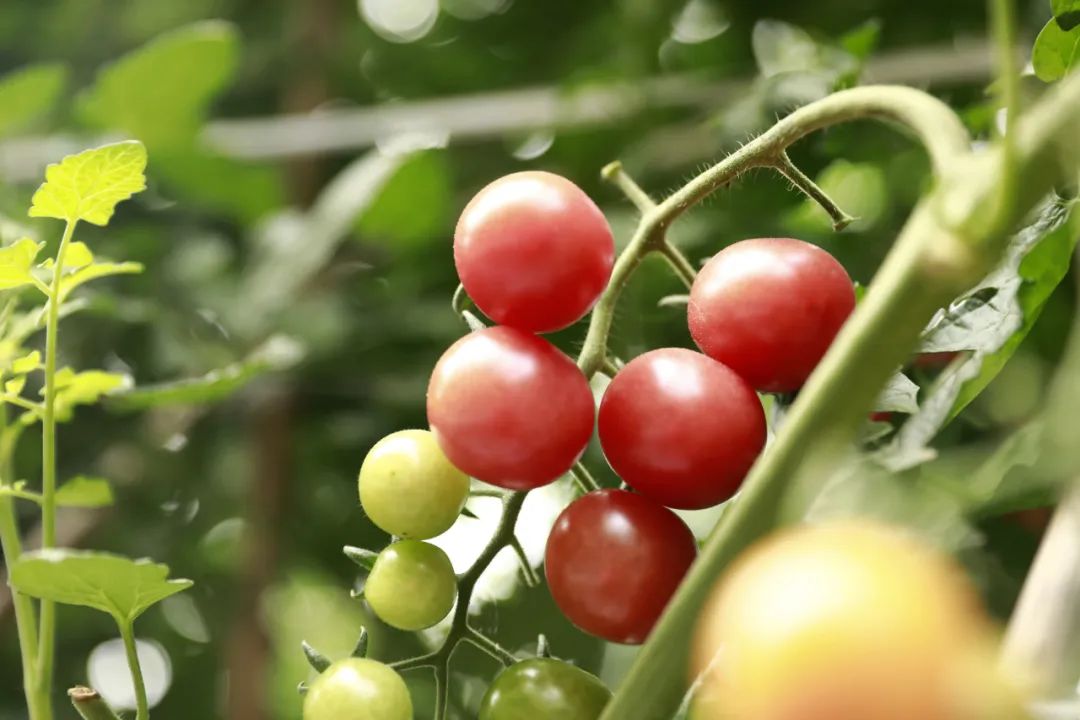 在成团镇莲花屯富硒小番茄种植基地,记者看到一颗颗红彤彤、黄灿灿小番茄镶嵌在绿叶丛中微微探出头来,好像在欢迎游客的到来。基地负责人韦应成正忙着采摘订单小番茄,方便客人随到即拿。