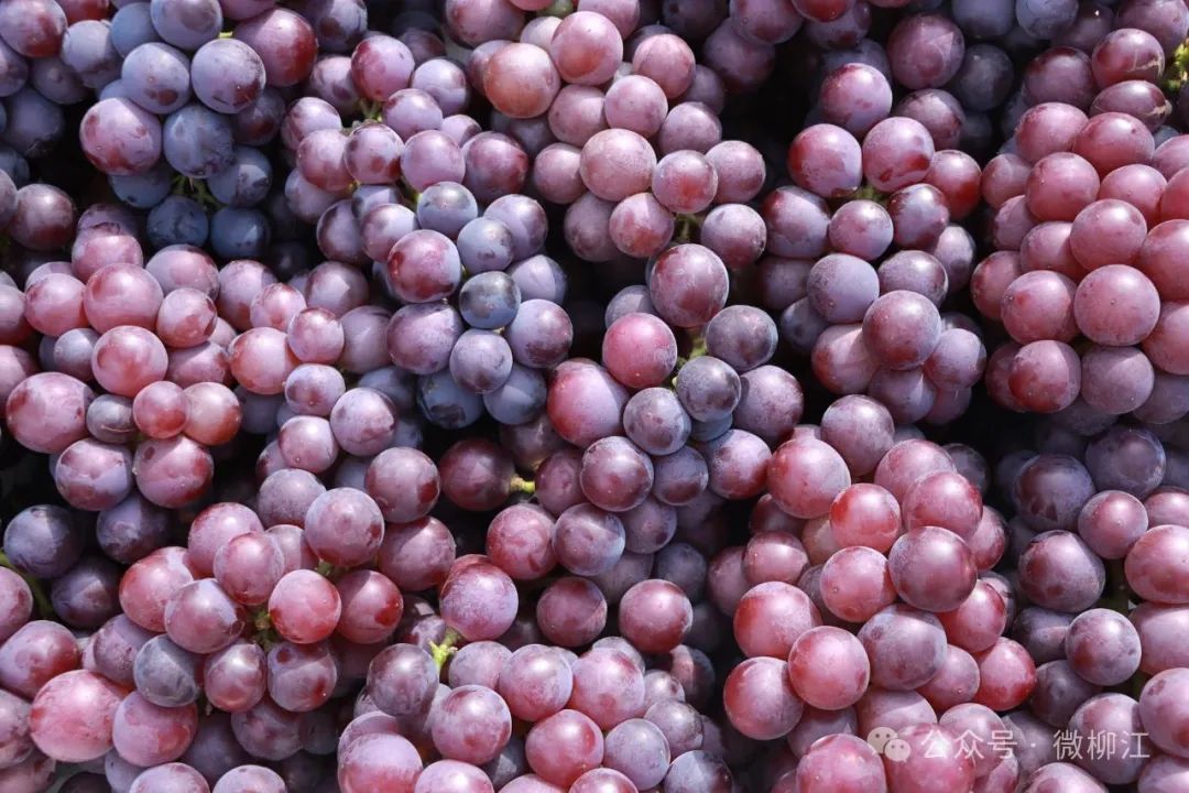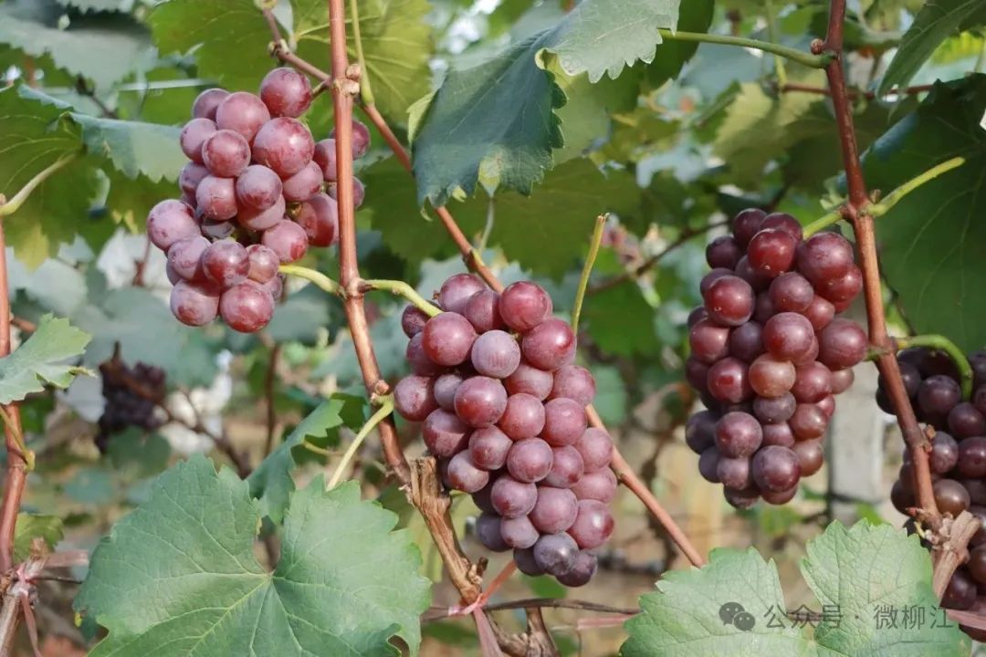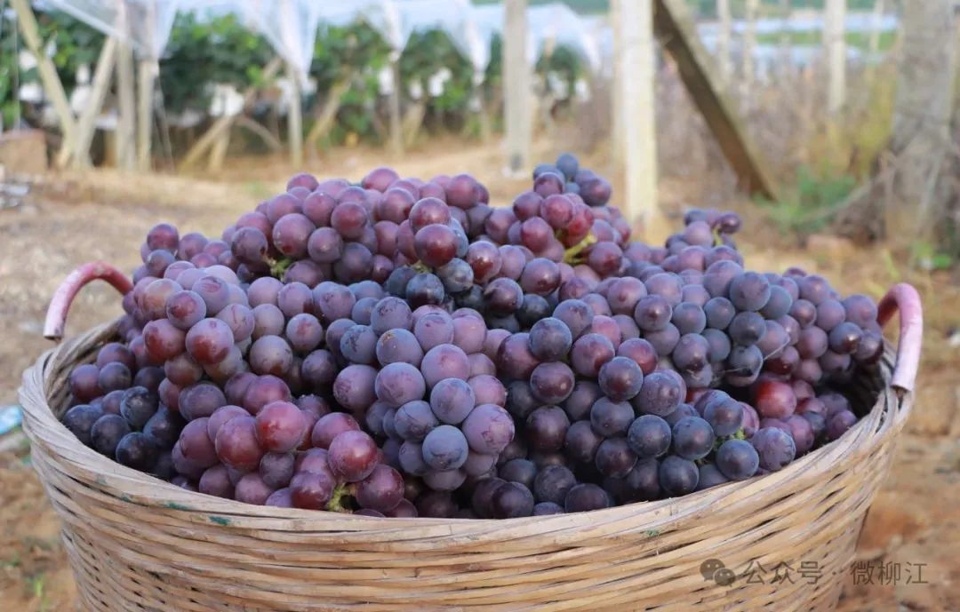 盛夏时节,柳江区成团镇鲁比村葡萄大棚内一片生机盎然,整齐的葡萄架上,深绿藤蔓如绿色绸带缠绕攀爬,一串串葡萄紧密簇拥,颗颗饱满,似紫宝石般在阳光下闪烁诱人光泽,浓郁果香弥漫在空气中,宣告着又一个丰收季到来。