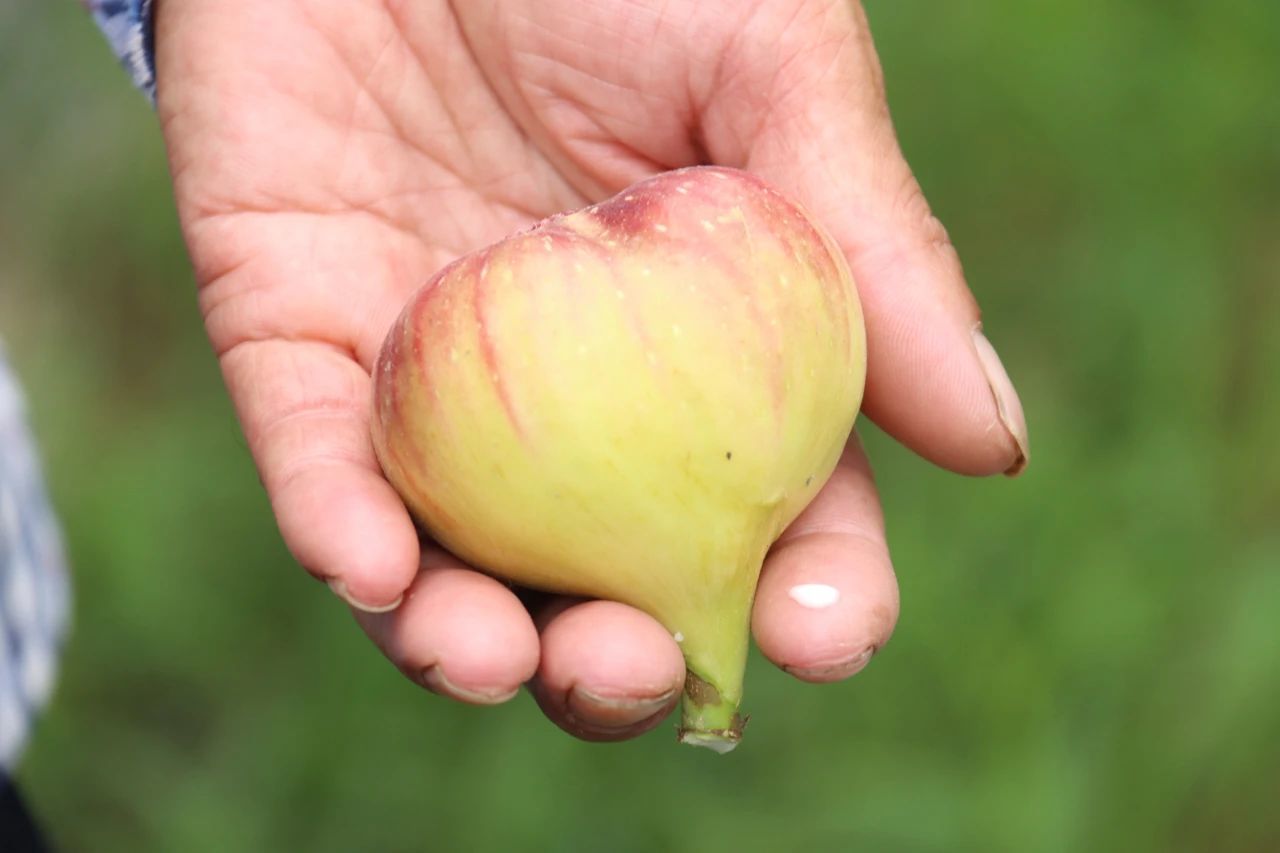 基地种植的无花果优质品种为波姬红,果肉绵密软糯,入口即化,甘甜如蜜的汁水中带着一丝清新果香,风味浓郁独特,富含膳食纤维、多种维生素及钙、铁等矿物质元素,具有润肠通便、清热解毒等保健功效。同时,该品种具有挂果期长的特点,采摘期从每年7月持续至次年1月,长达半年的采收期既保障市场供应,又为农户创造稳定的经济收益。