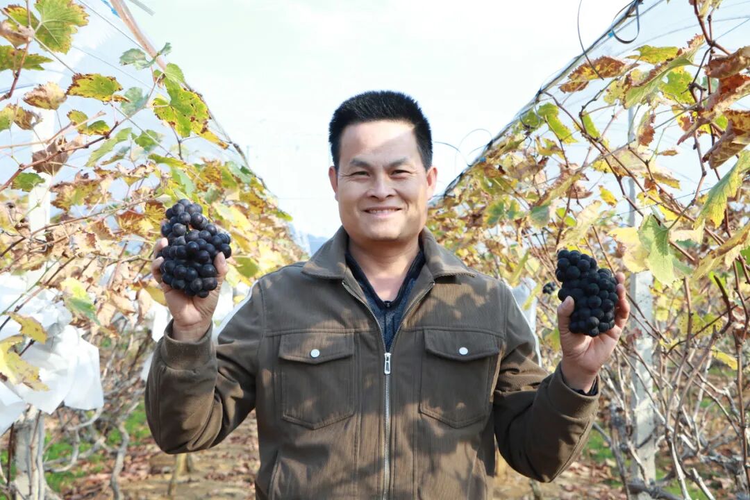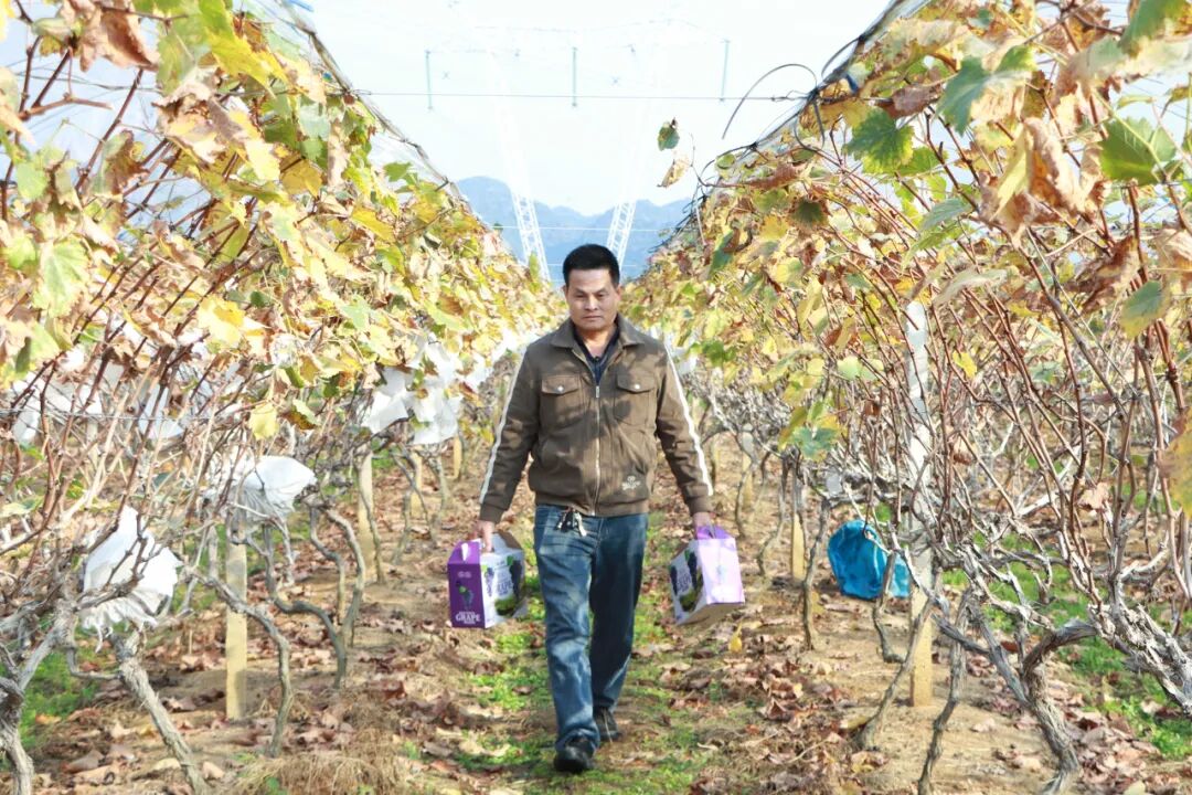 种植户王春随手托起一串紫得发亮的巨峰葡萄说,“我们的秘诀就是错峰上市,我今年种了6亩,亩产约2500斤,按目前每斤6元收购价,收入可观。”他指着刚刚打包好的礼盒说,“凭借优质口感、新鲜供应,深受消费者青睐,周边市县、本地商超和电商平台不断发来订单。”