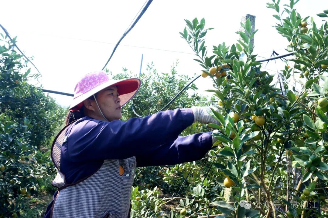11月18日,记者走进白山村圣泓水果产业示范区看到,一棵棵金桔树挂满了圆润饱满的金桔,像一盏盏橙黄色的灯笼。在冬日暖阳的照耀下,散发着成熟甜蜜气息的果实,令人垂涎欲滴。金桔树下,工人们手持果剪来回穿梭,熟练地采摘着成熟的金桔。
